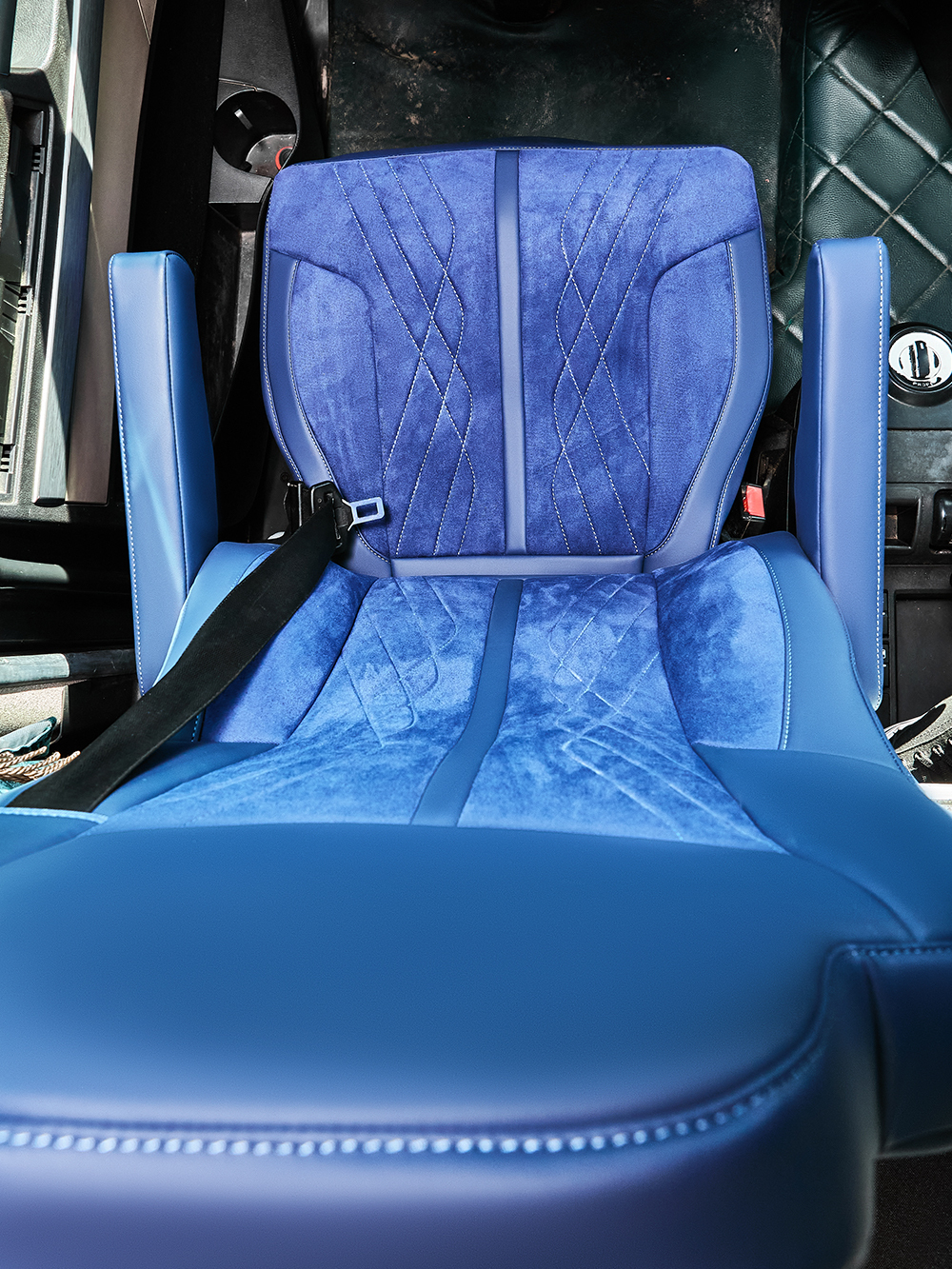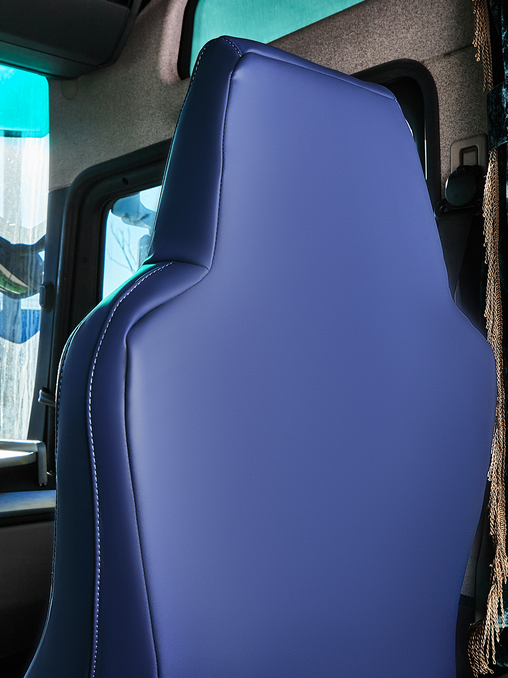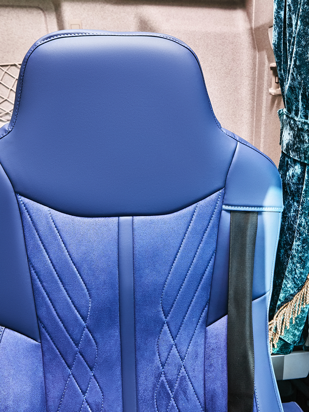 Чехлы Люкс MAN TGX до 2021 года (экокожа, синий, синяя вставка)
