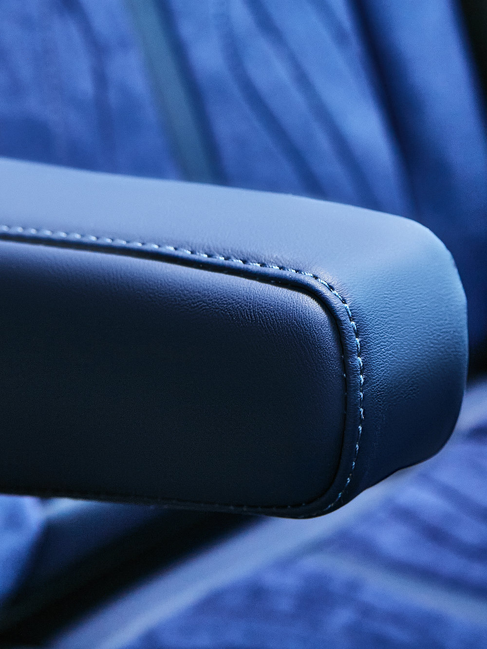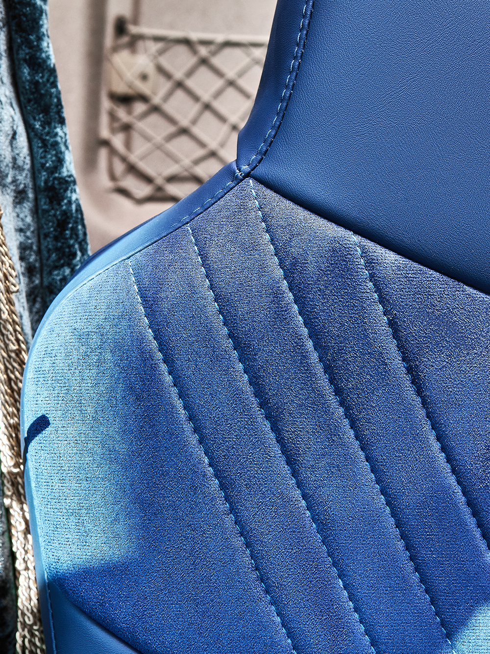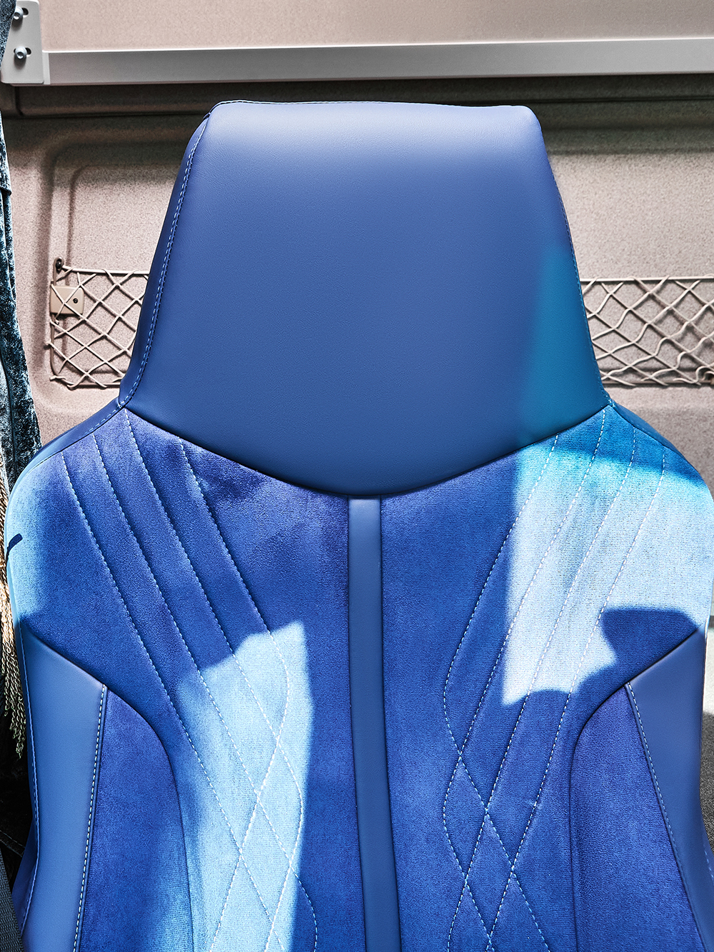 Чехлы Люкс MAN TGX до 2021 года (экокожа, синий, синяя вставка)