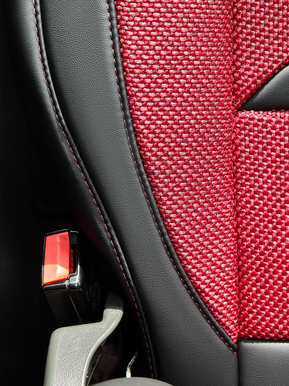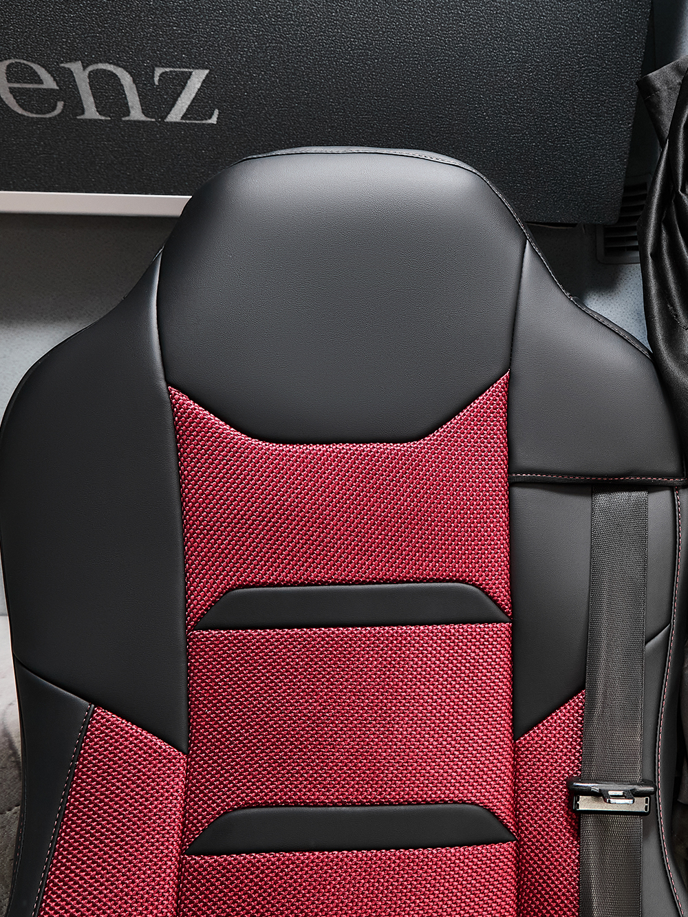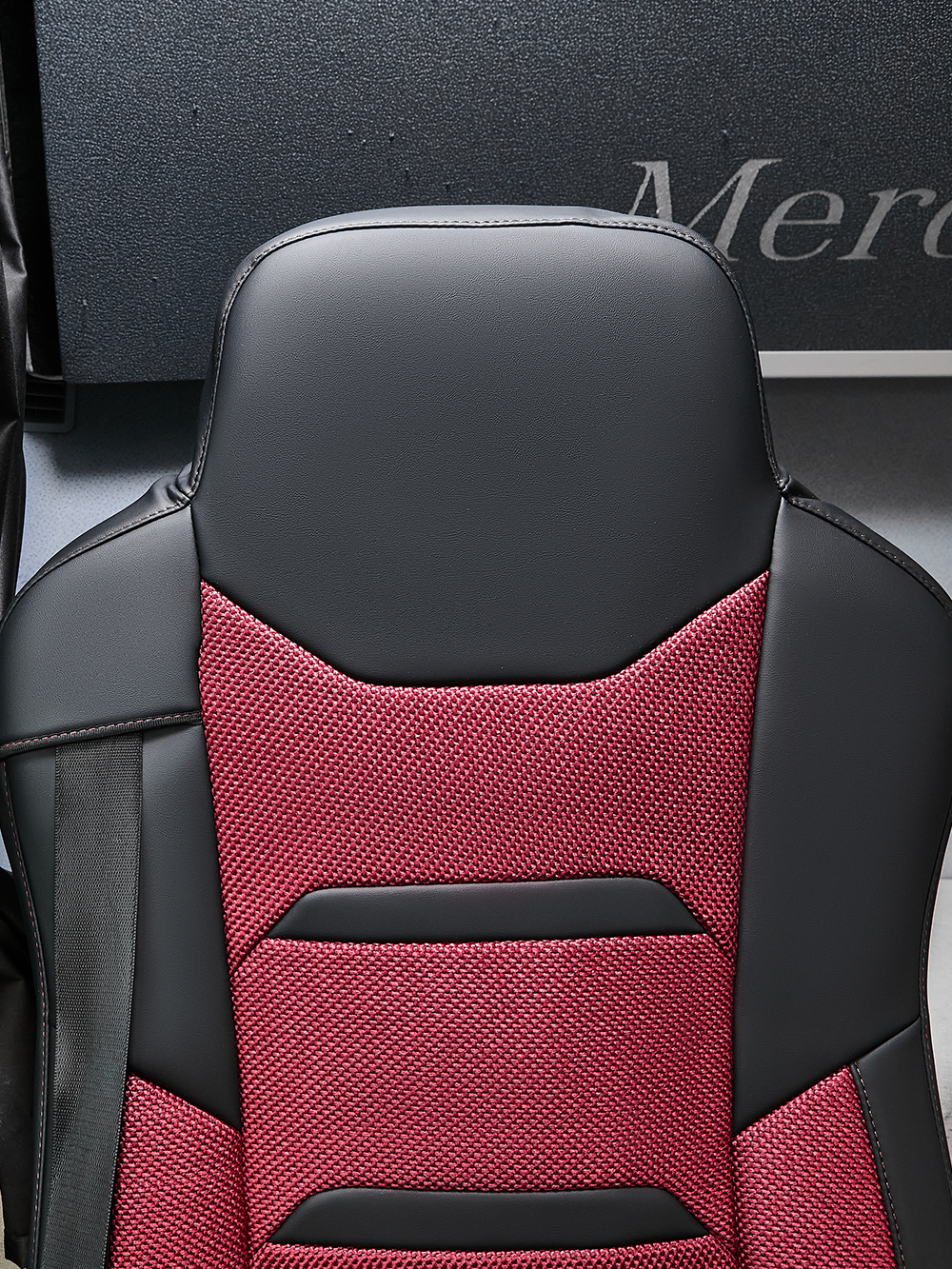 Чехлы Люкс Mercedes Actros MP3 (экокожа, черный, красная вставка (рогожка))