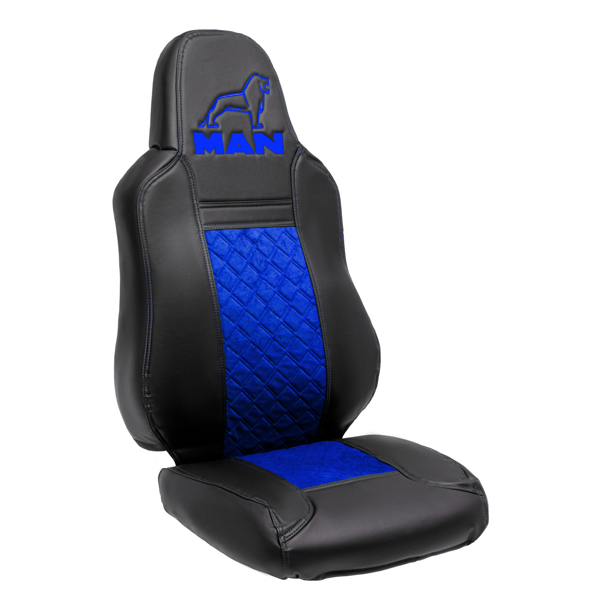 Чехлы MAN TGX, TGS с 2021 года c регулировкой ремня безопасности водителя по высоте (экокожа, синий)