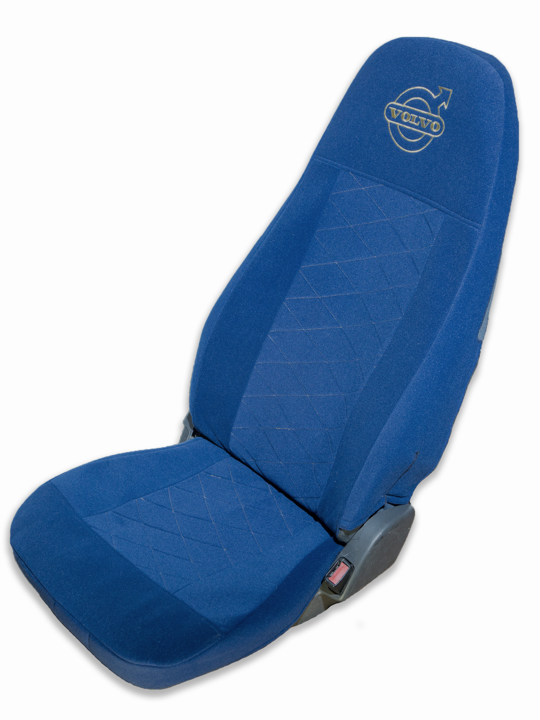 Чехлы VOLVO FH-13 после 2018 года: 2 высоких сиденья, ремни от стоек сиденья (нет вырезов под ремень) (велюр, синий)