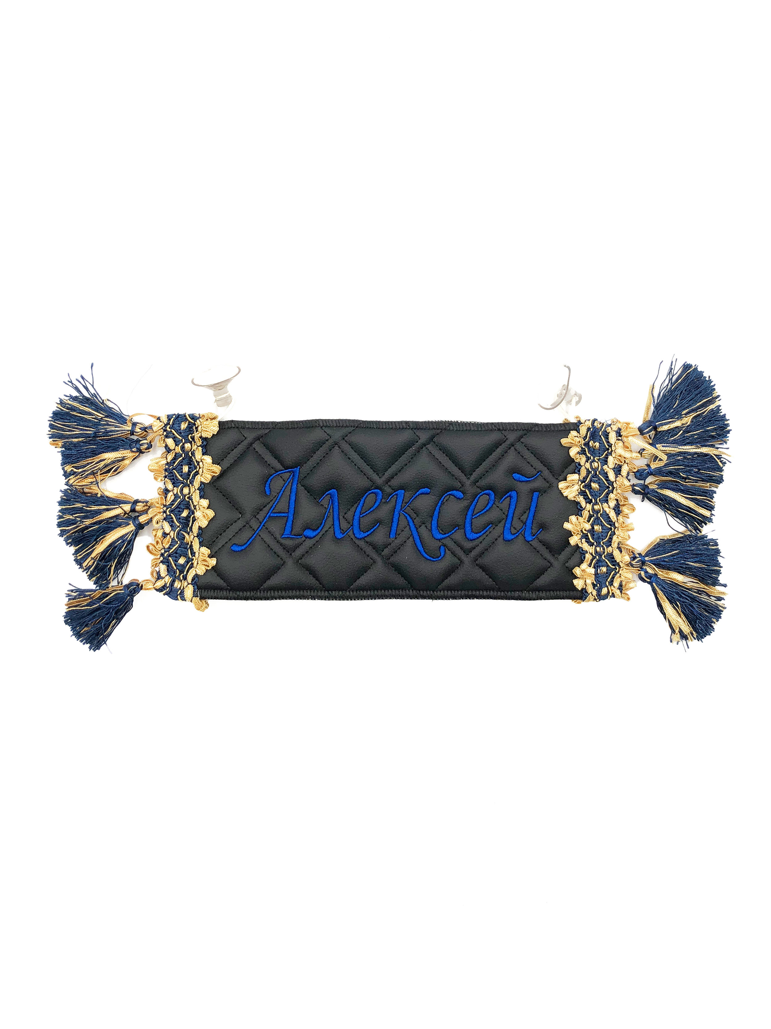 Двусторонний вымпел-карман для автомобиля с вышивкой и отделкой бахромой.