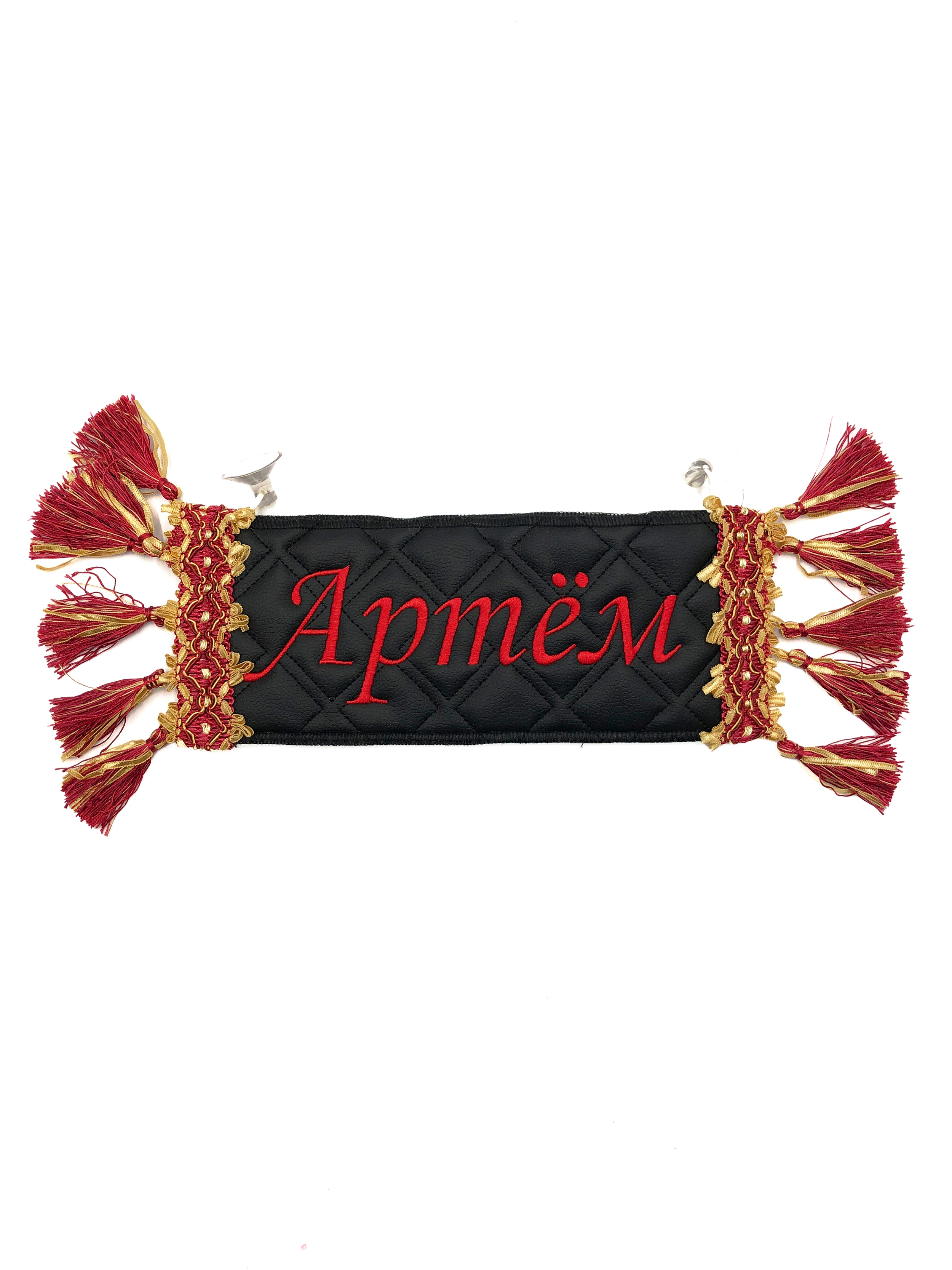 Двусторонний вымпел-карман для автомобиля с вышивкой и отделкой бахромой.
