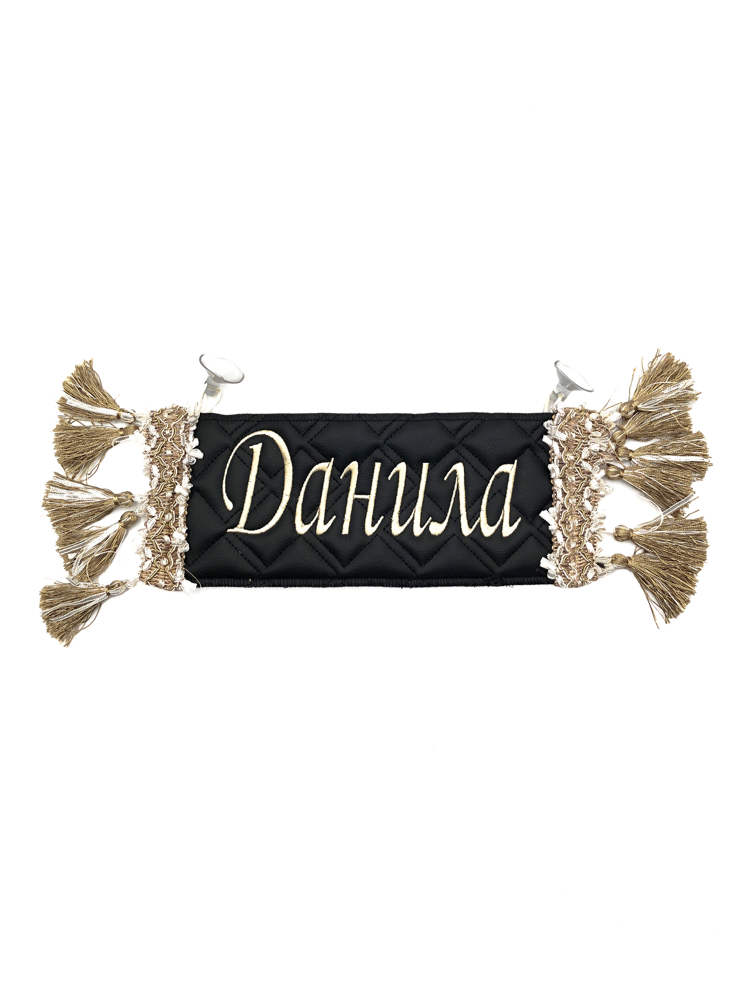 Двусторонний вымпел-карман для автомобиля с вышивкой и отделкой бахромой.