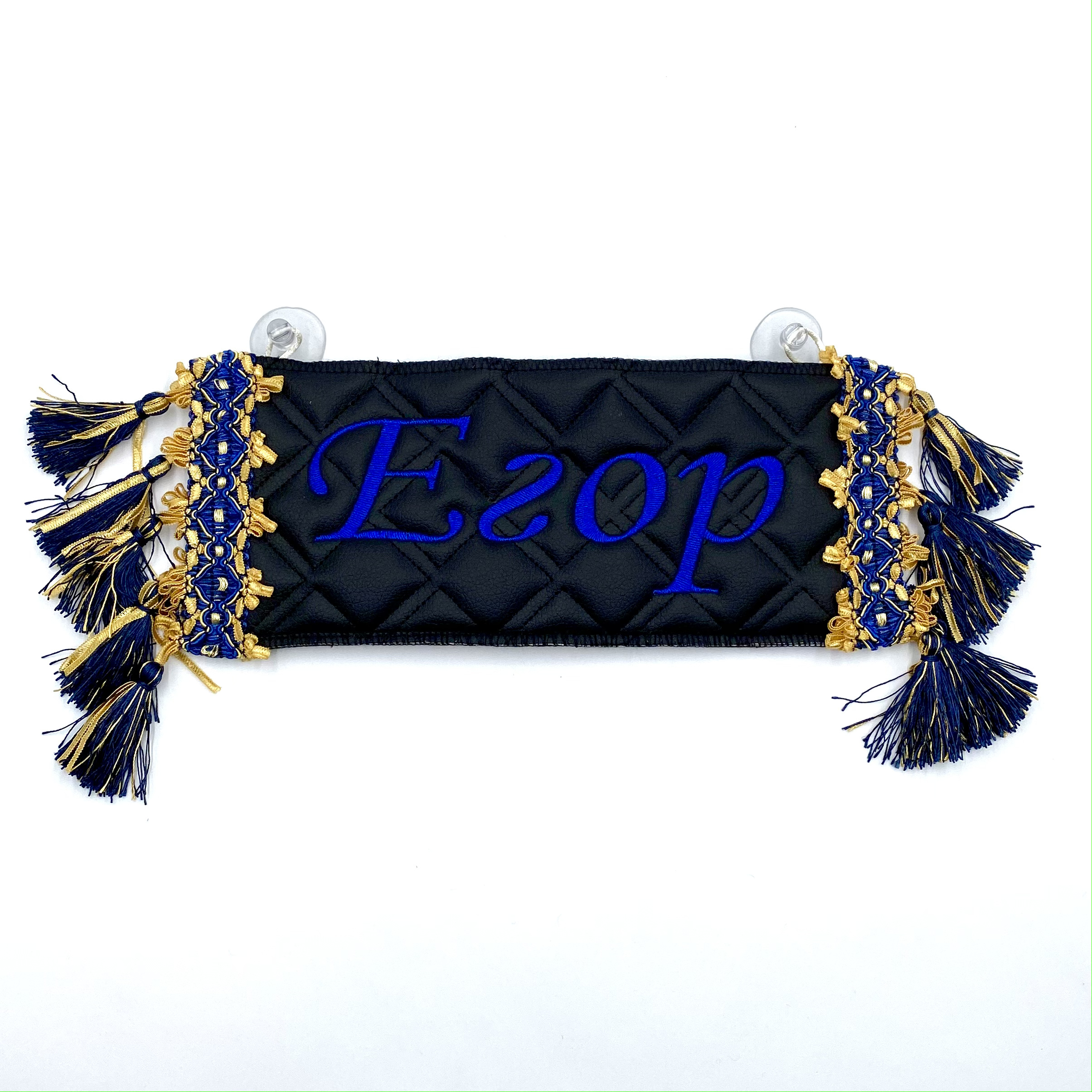 Двусторонний вымпел-карман для автомобиля с вышивкой и отделкой бахромой.