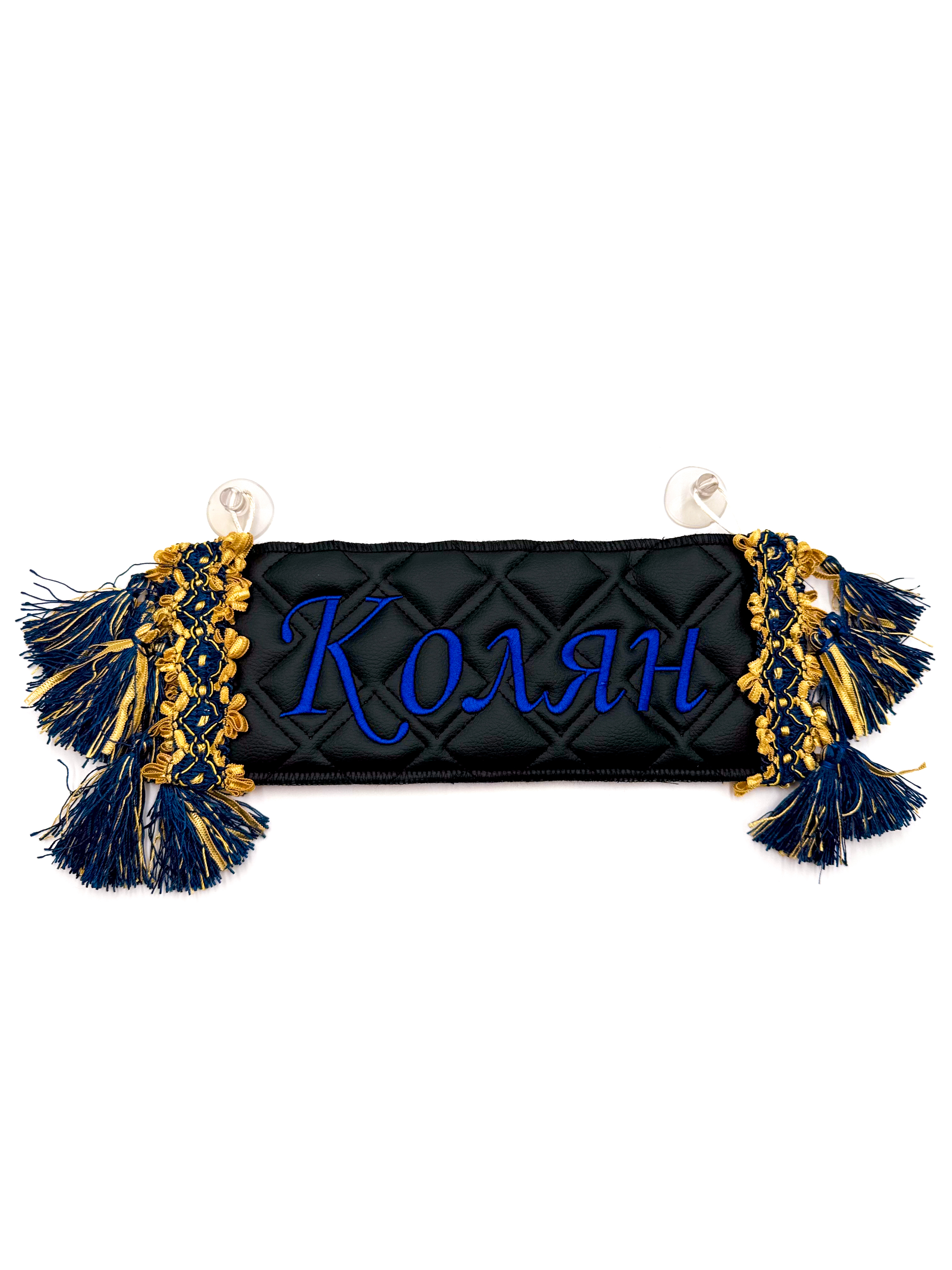 Двусторонний вымпел-карман для автомобиля с вышивкой и отделкой бахромой.