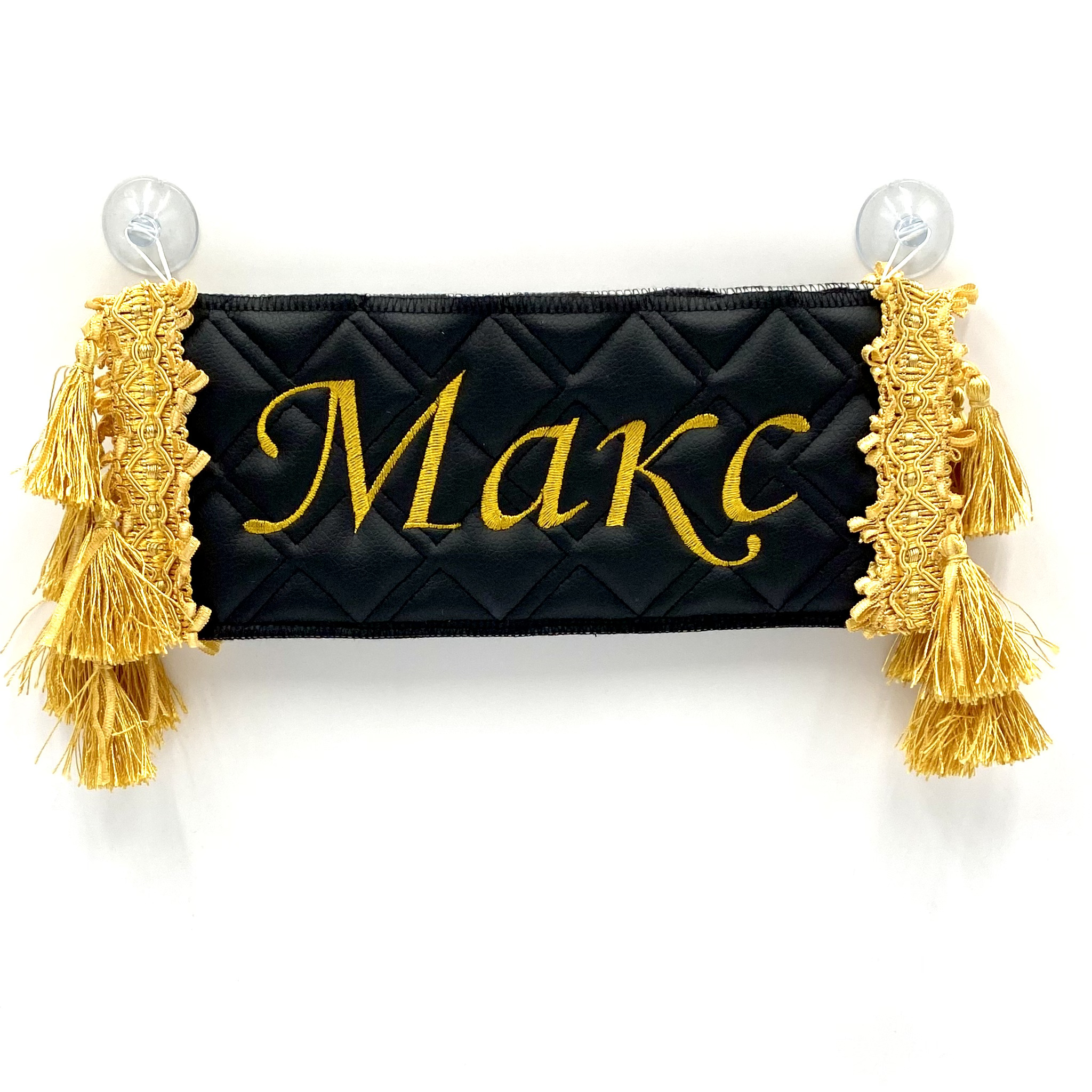 Двусторонний вымпел-карман для автомобиля с вышивкой и отделкой бахромой.