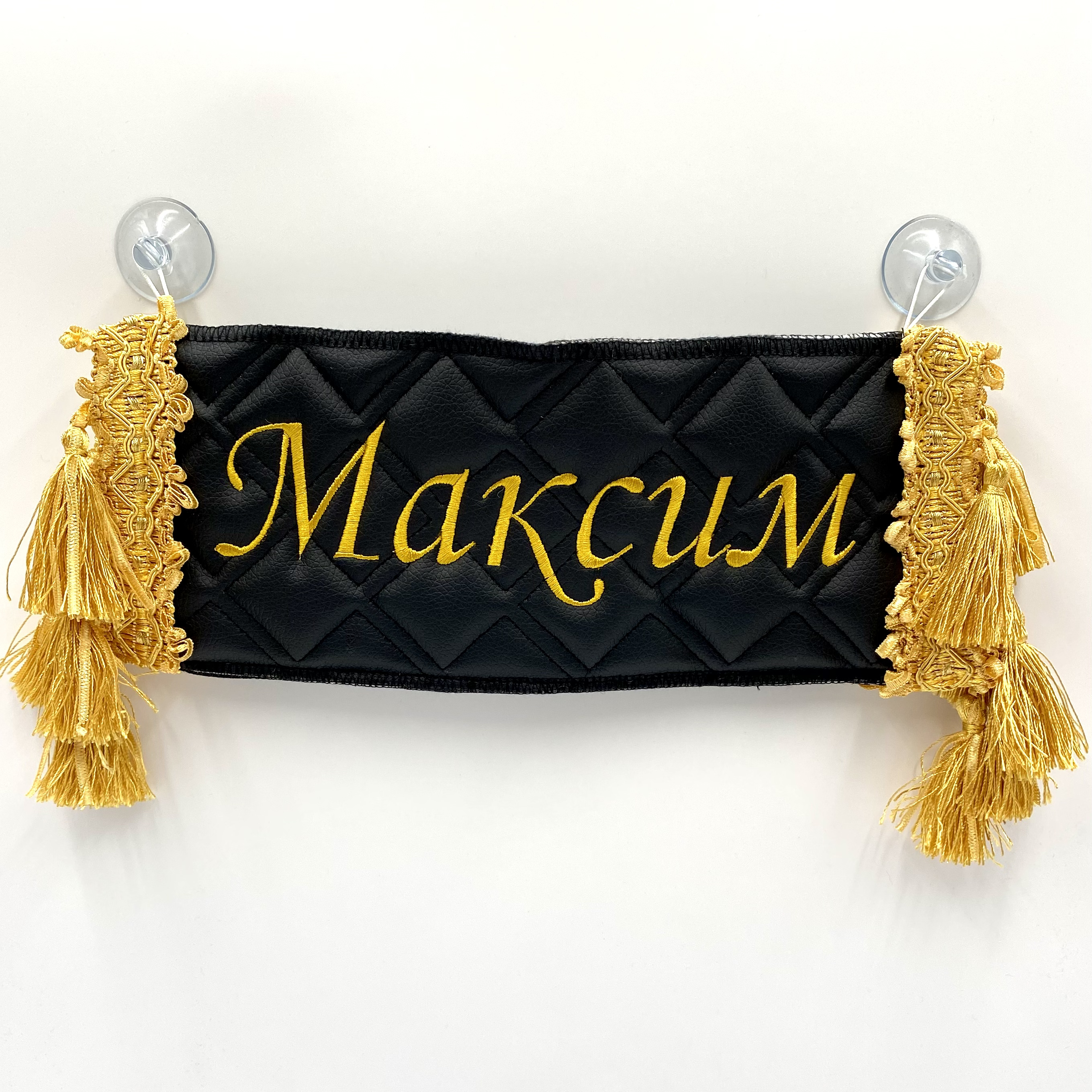 Двусторонний вымпел-карман для автомобиля с вышивкой и отделкой бахромой.