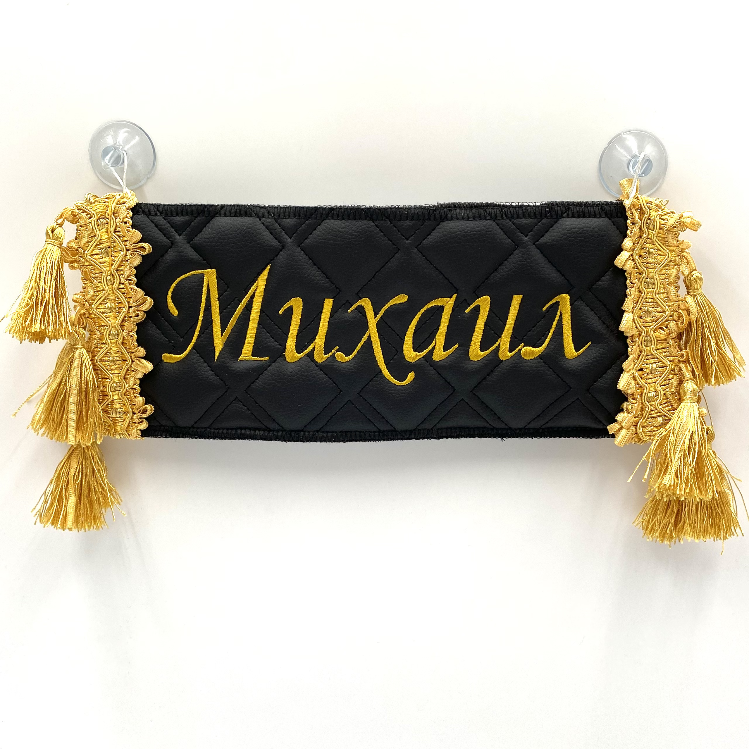Двусторонний вымпел-карман для автомобиля с вышивкой и отделкой бахромой.