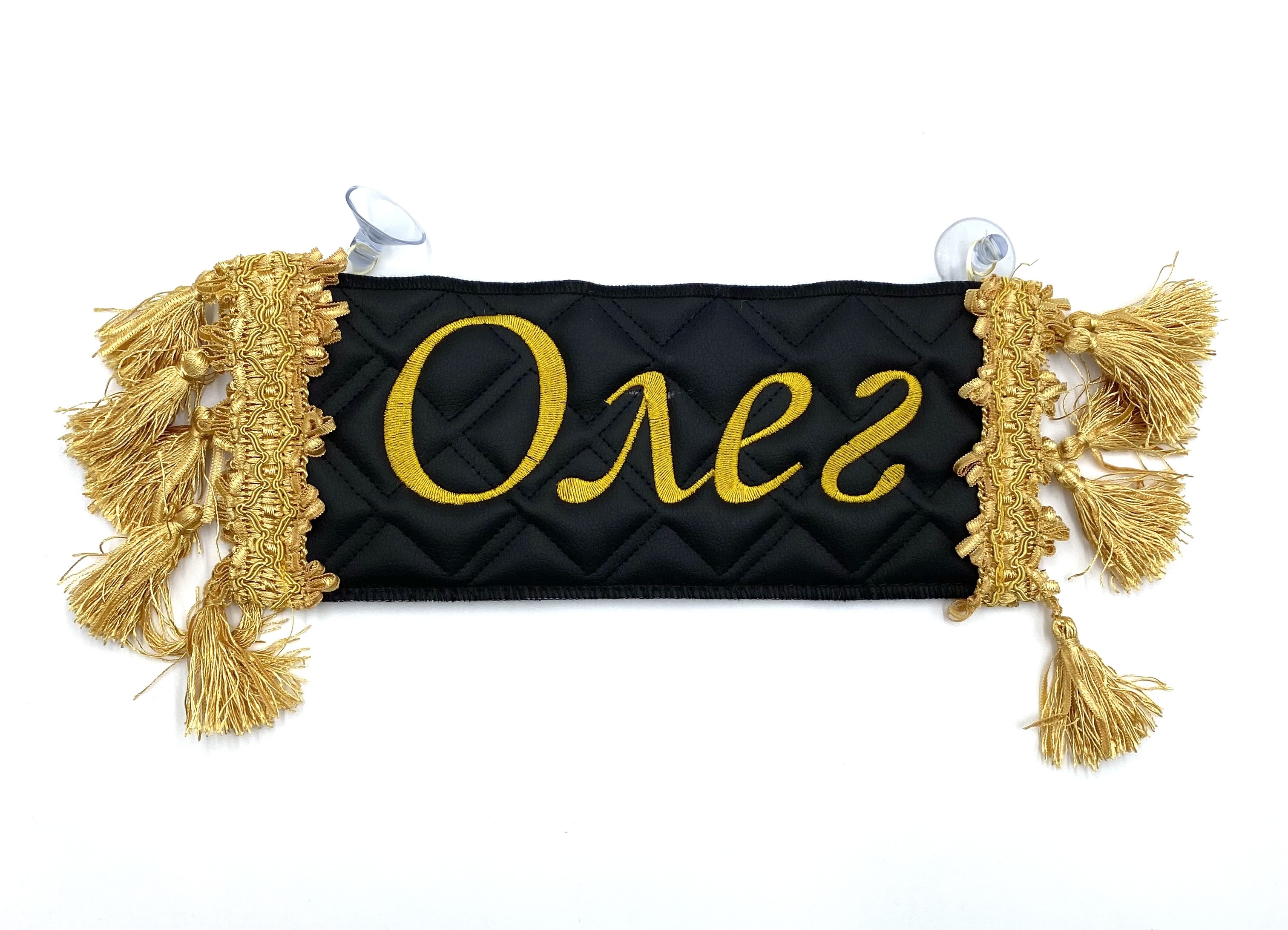 Двусторонний вымпел-карман для автомобиля с вышивкой и отделкой бахромой.