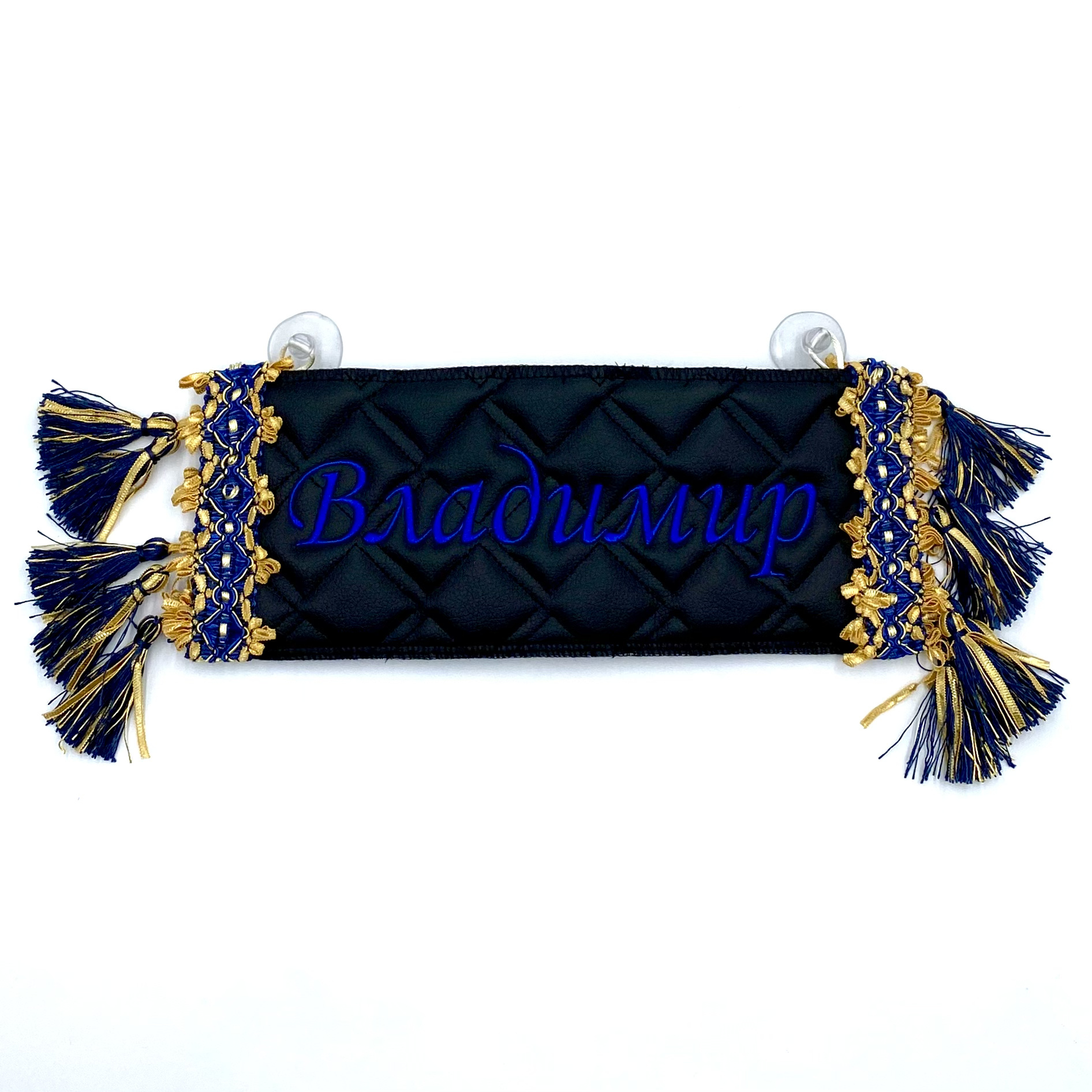 Двусторонний вымпел-карман для автомобиля с вышивкой и отделкой бахромой.