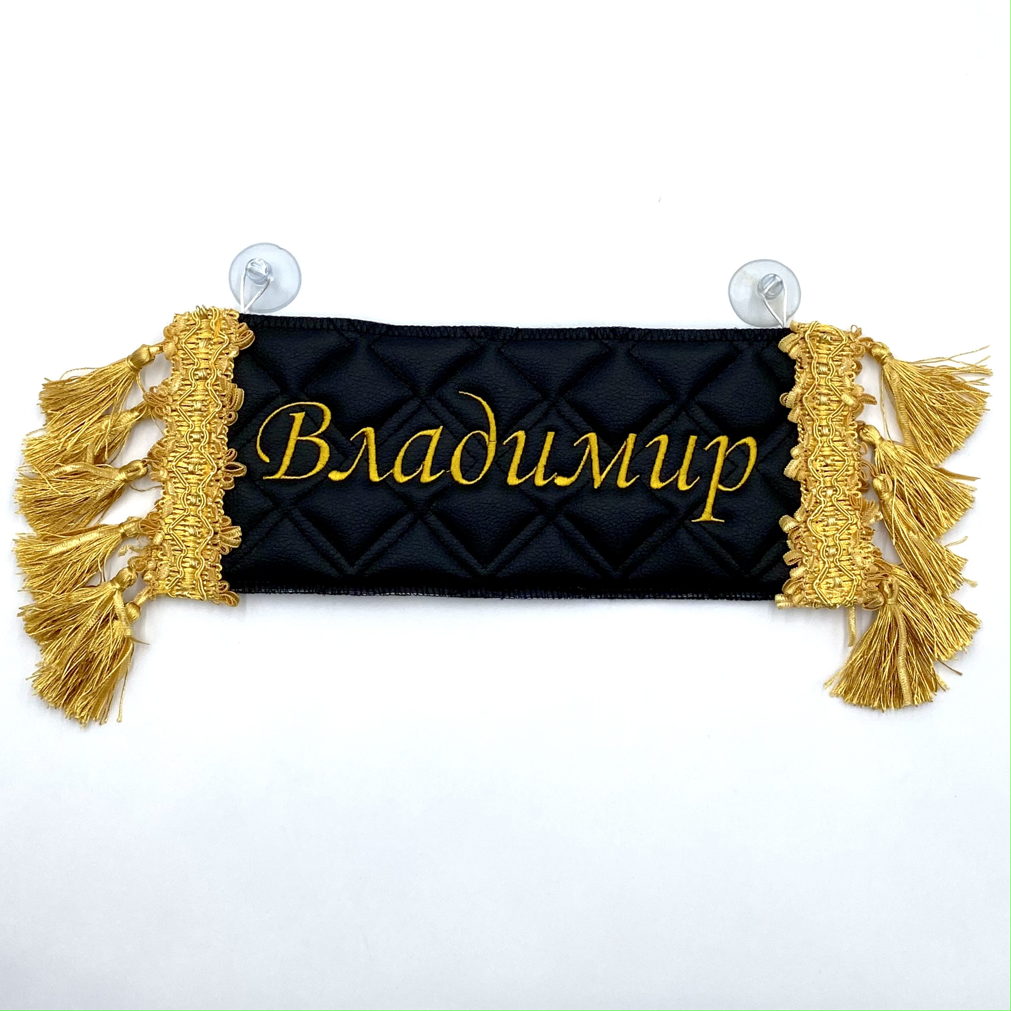 Двусторонний вымпел-карман для автомобиля с вышивкой и отделкой бахромой.