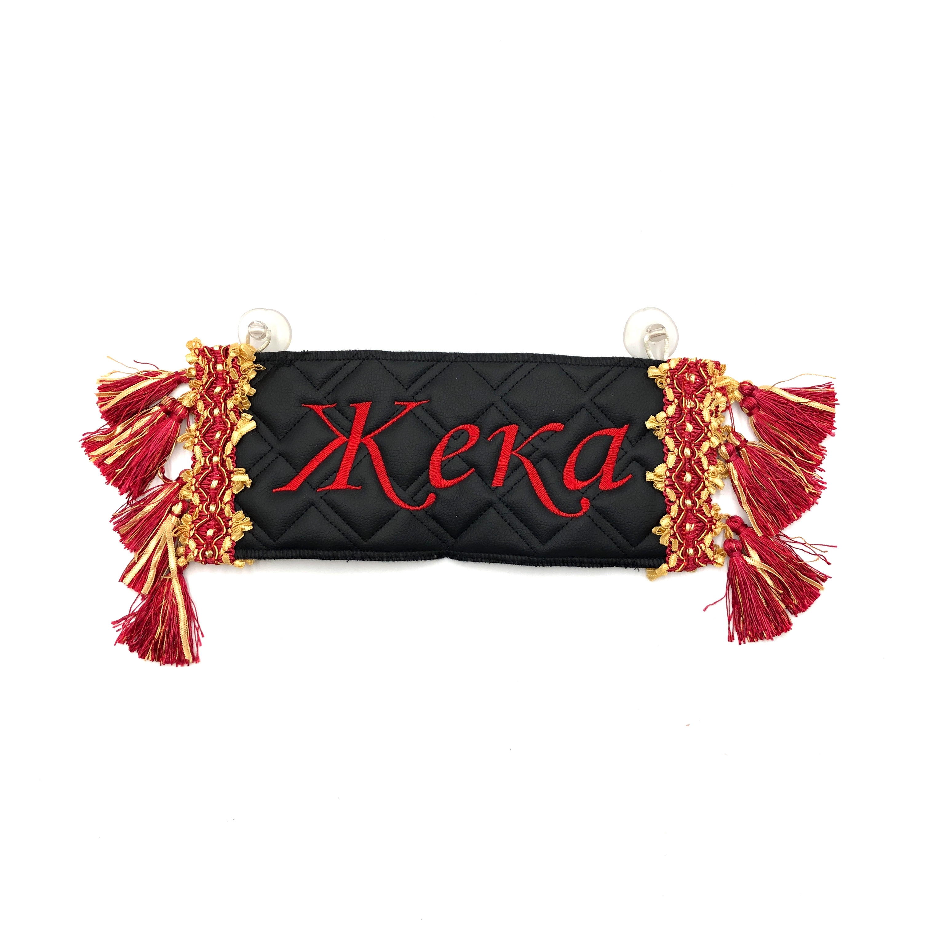 Двусторонний вымпел-карман для автомобиля с вышивкой и отделкой бахромой.