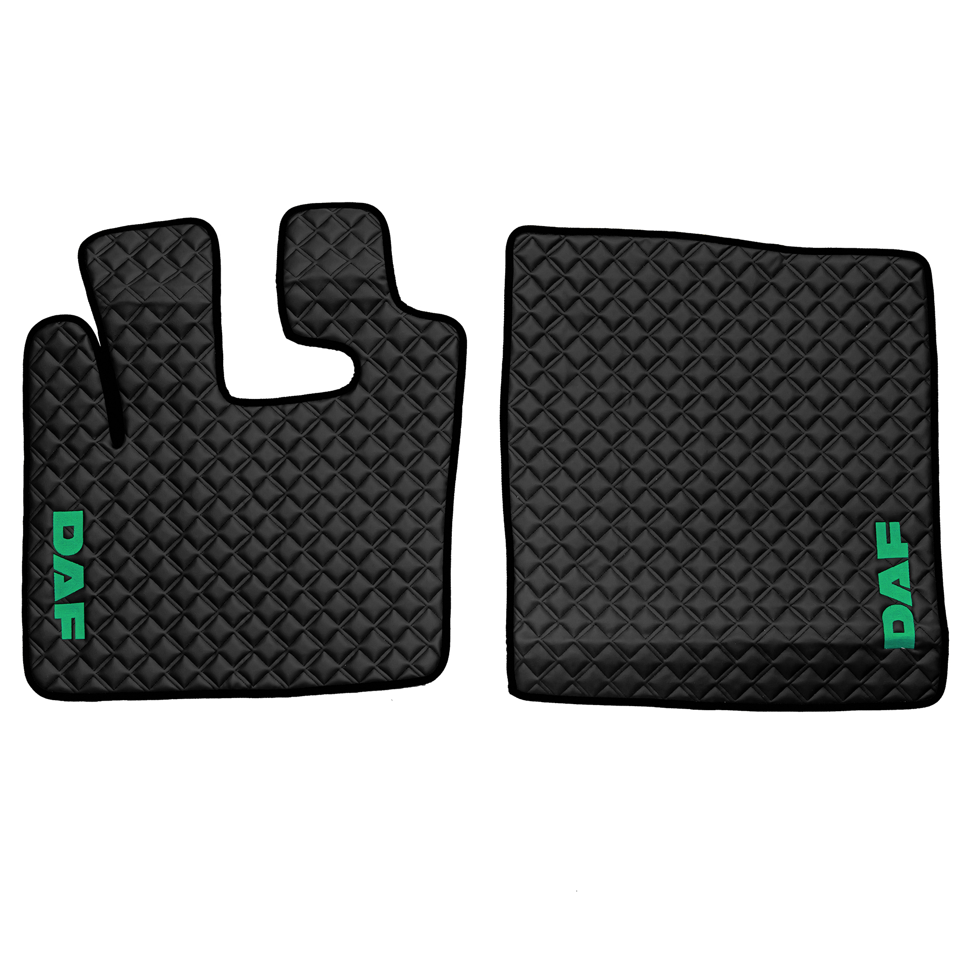 Ковры Daf XF-105 с 2006 года (механика) (экокожа, черный, черный кант, зеленая вышивка)