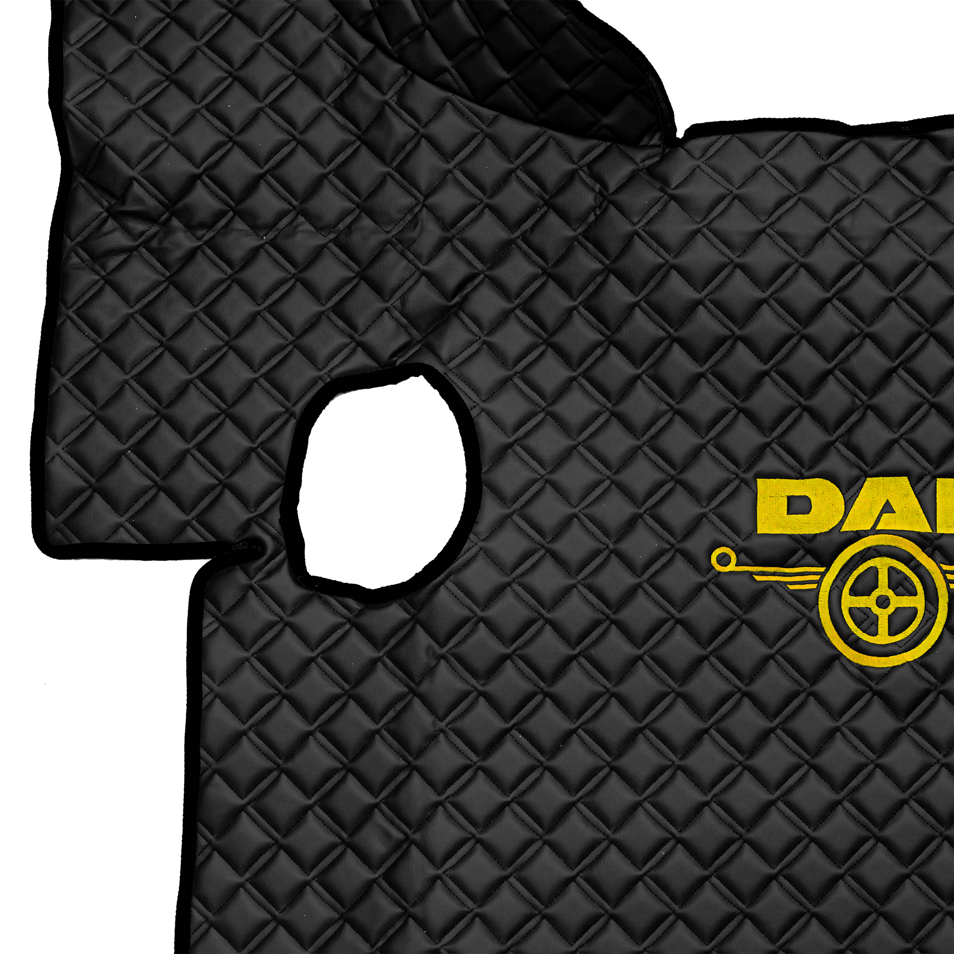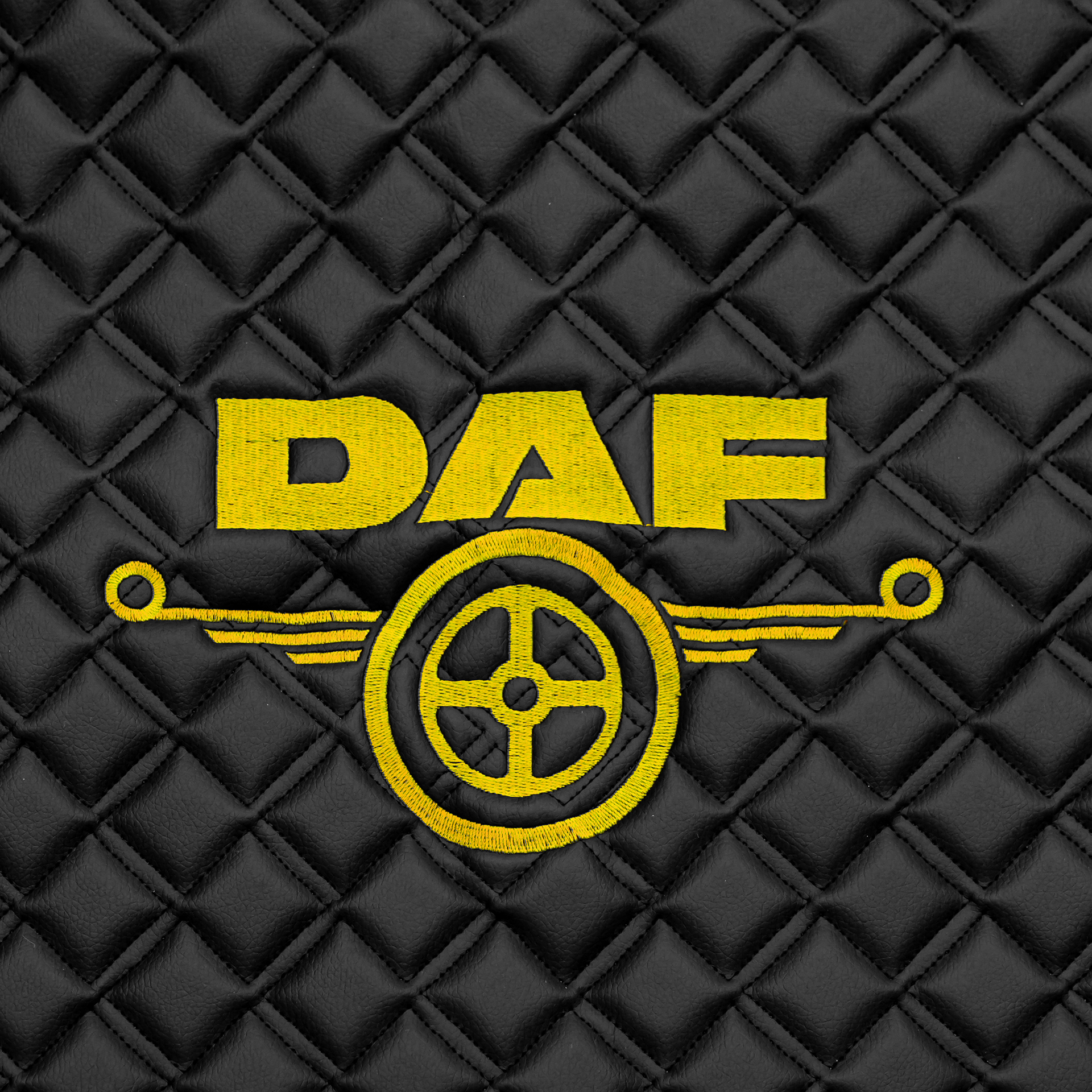 Ковры Daf XF-105 с 2006 года (механика) (экокожа, черный, черный кант, желтая вышивка)