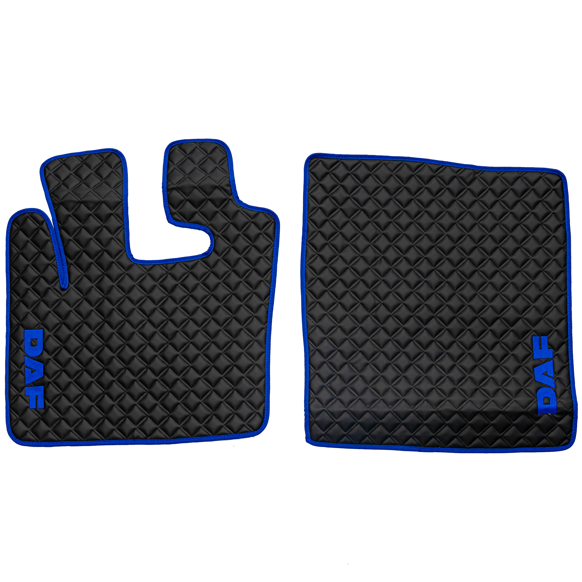 Ковры Daf XF-105 с 2006 года (механика) (экокожа, черный, синий кант, синяя вышивка)
