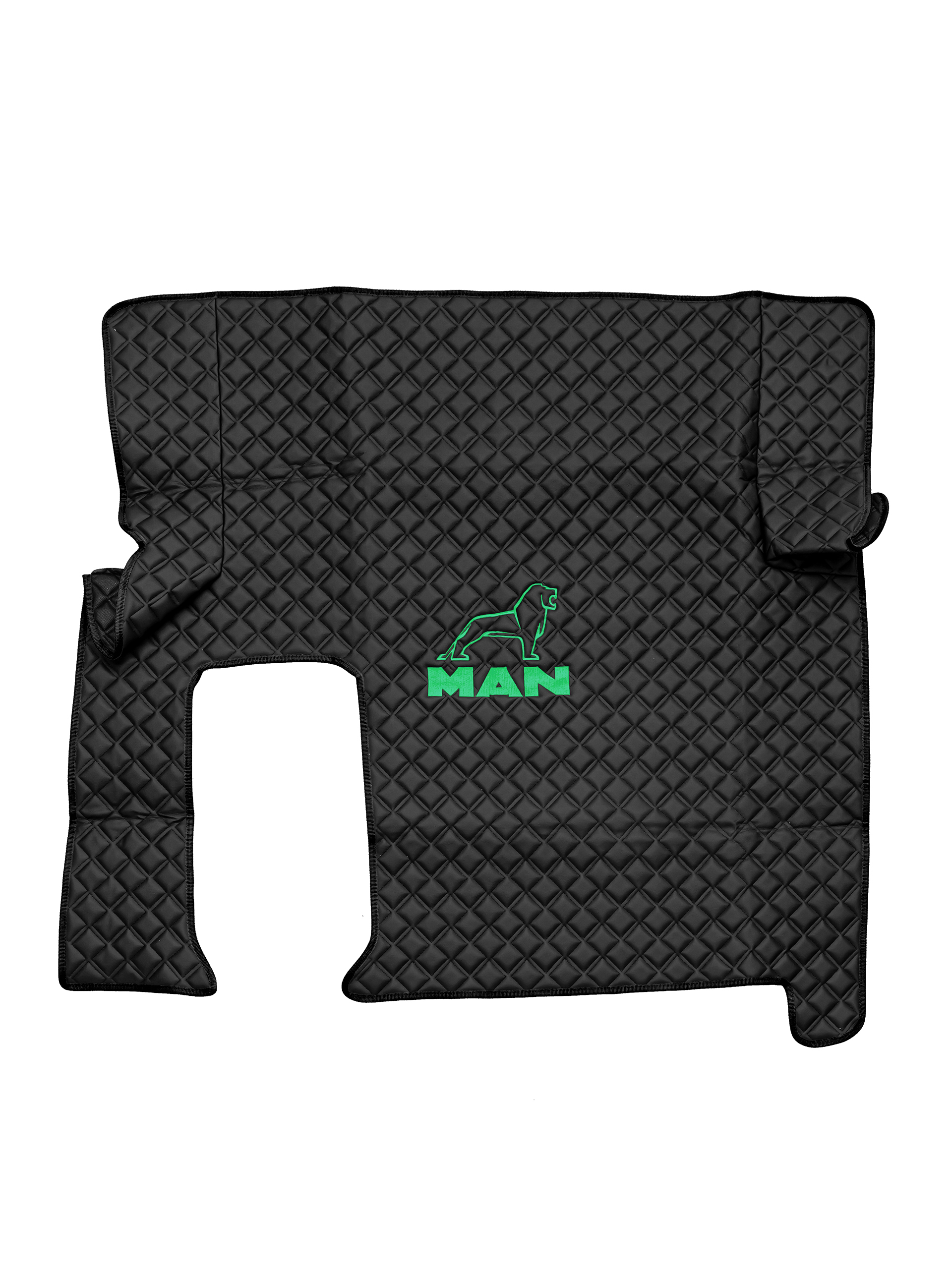Ковры MAN TGX с 1-м ящиком (автомат) (экокожа, черный, черный кант, зеленая вышивка)