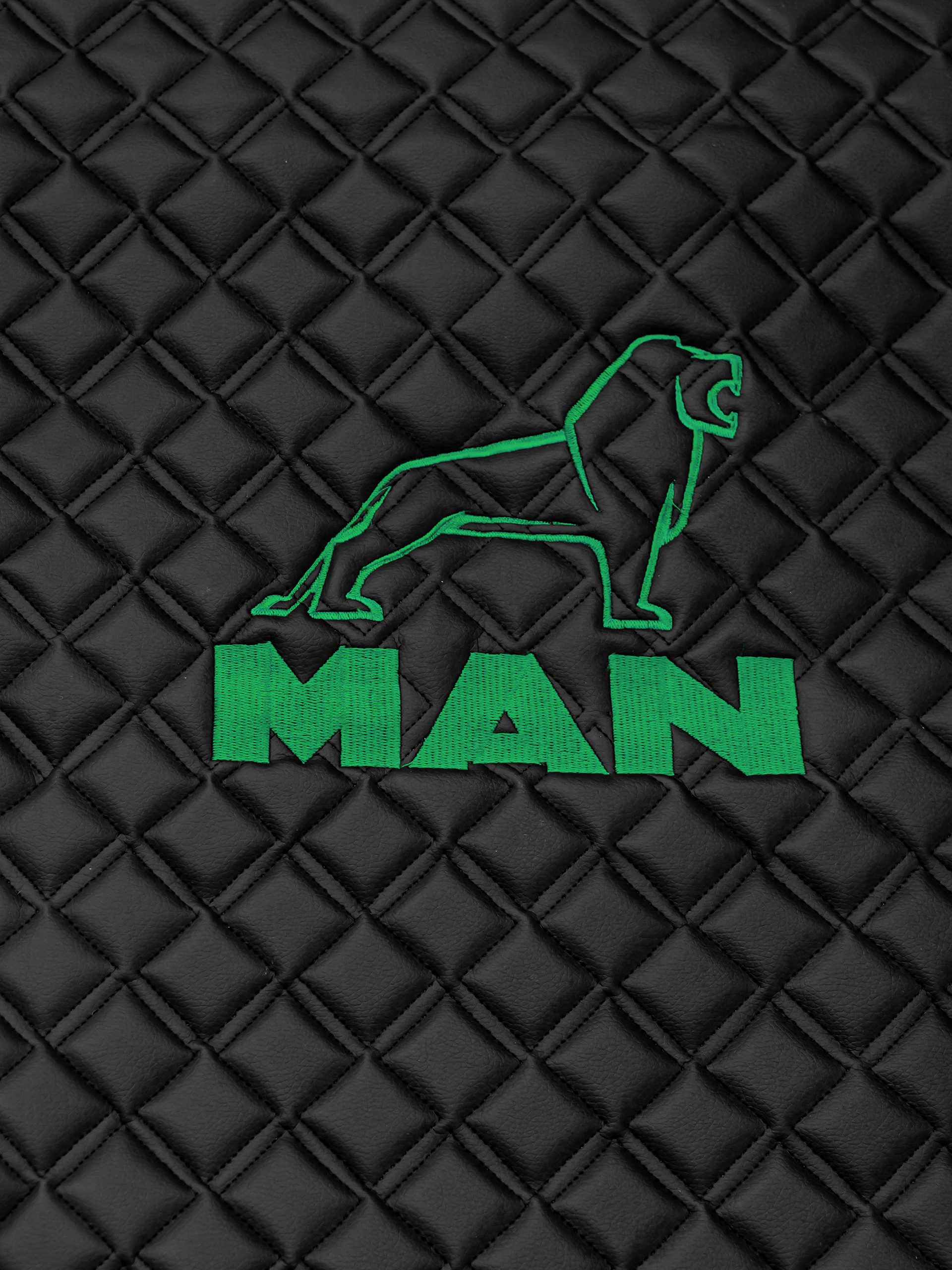 Ковры MAN TGX с 1-м ящиком (механика) (экокожа, черный, черный кант, зеленая вышивка)