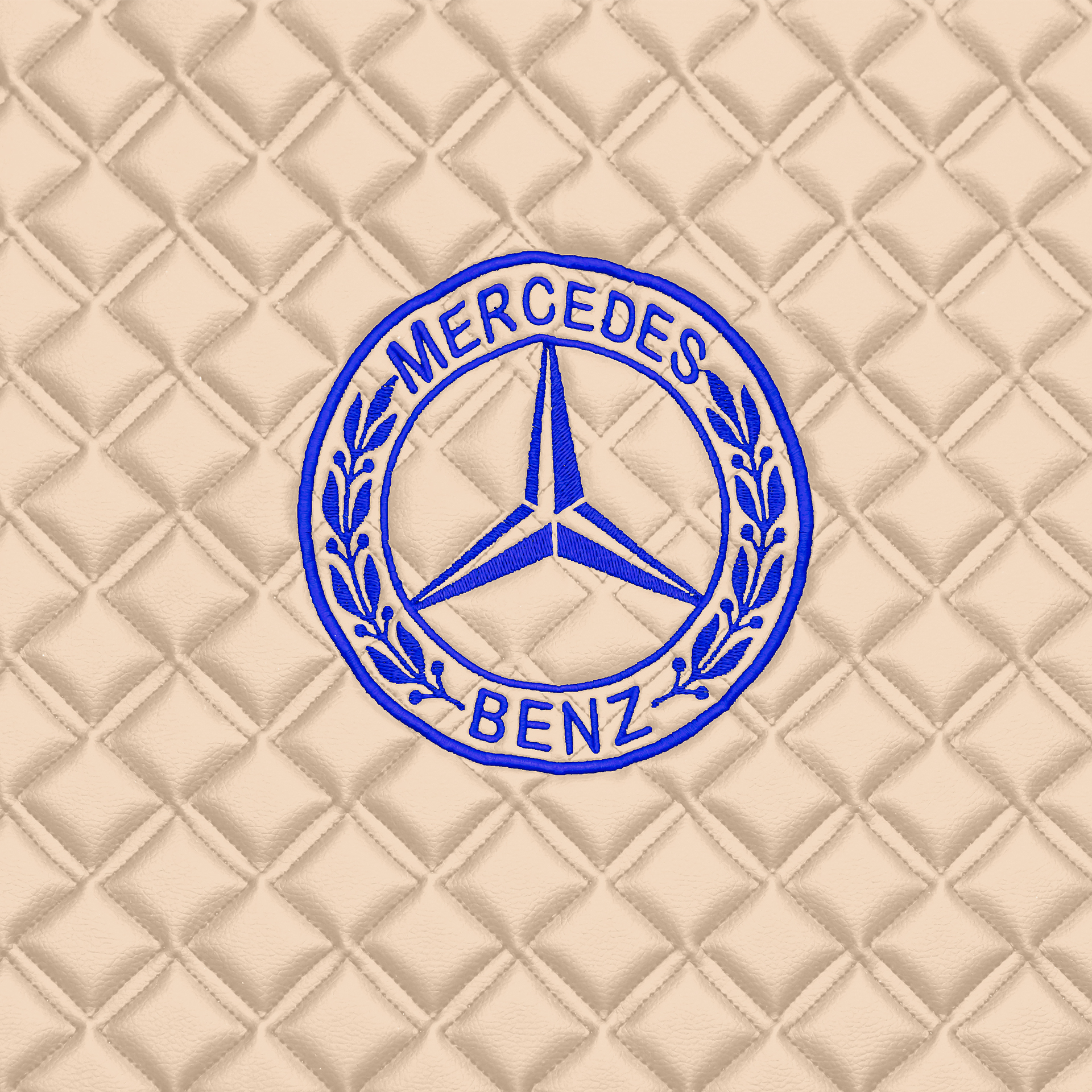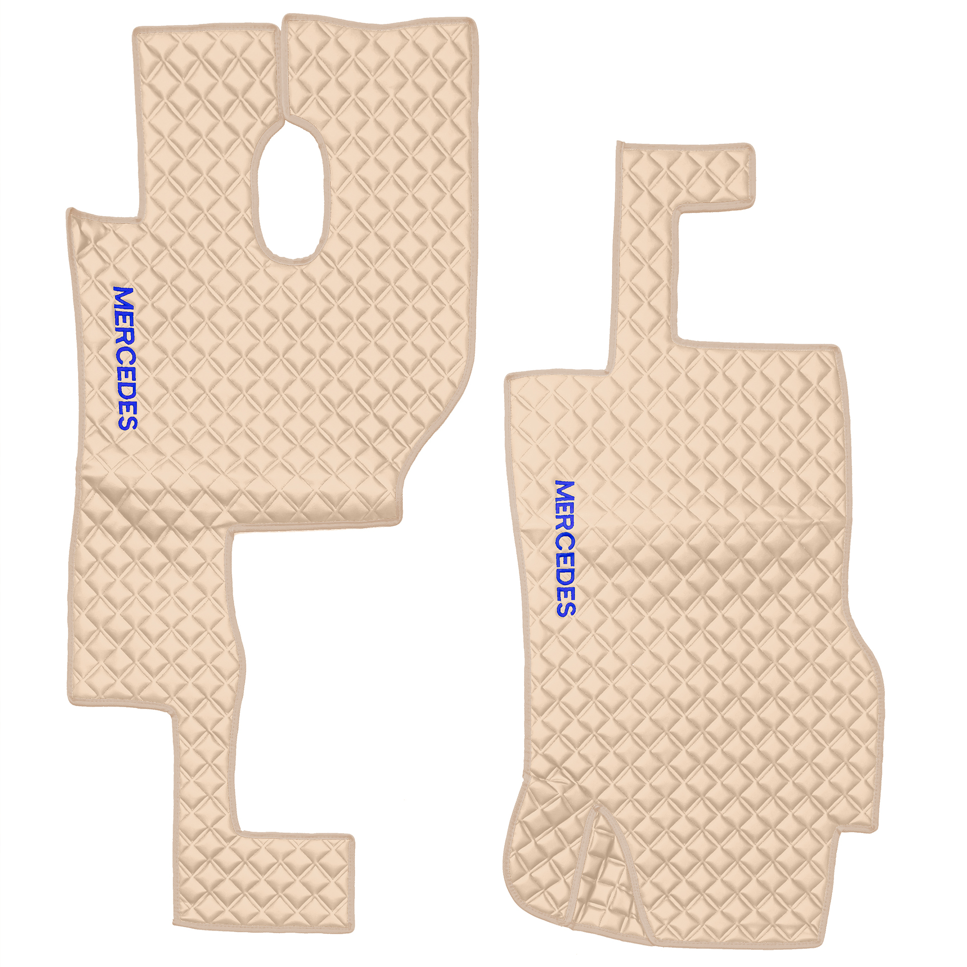 Ковры MERCEDES Actros MP3 (автомат) с шахтой (экокожа, бежевый, бежевый кант, синяя вышивка)