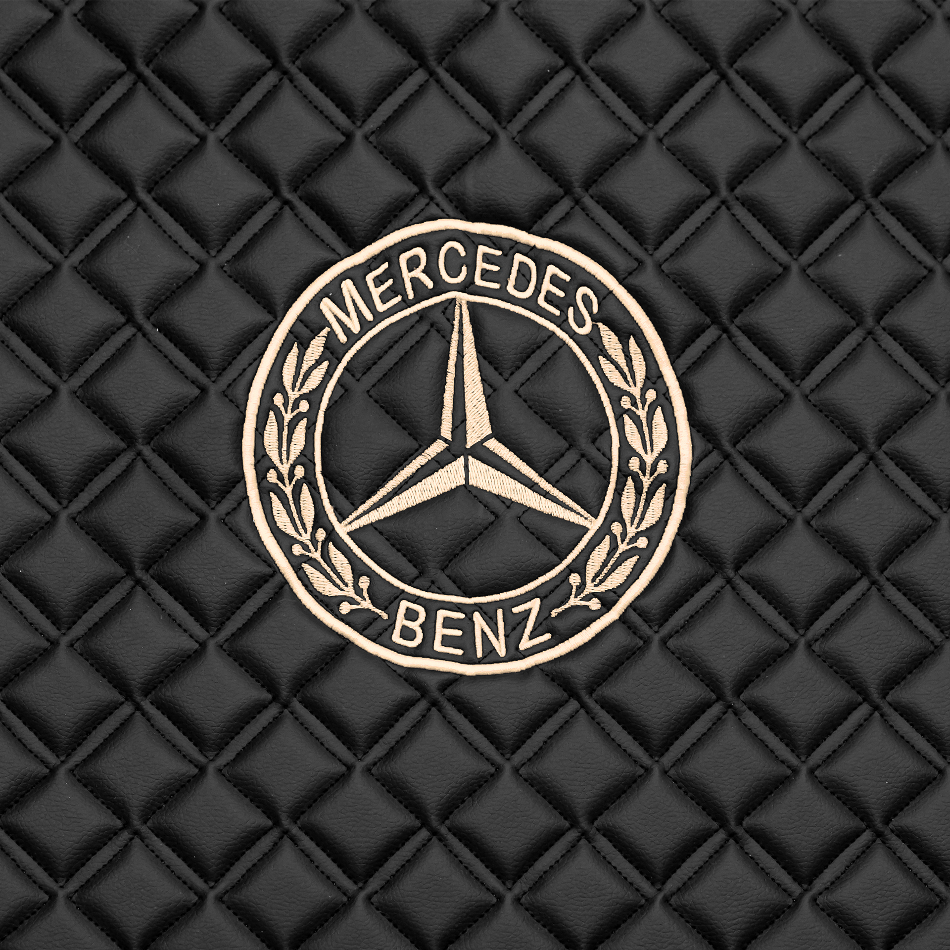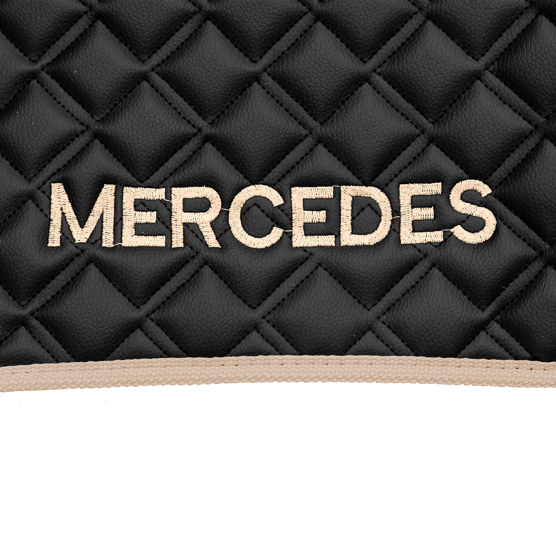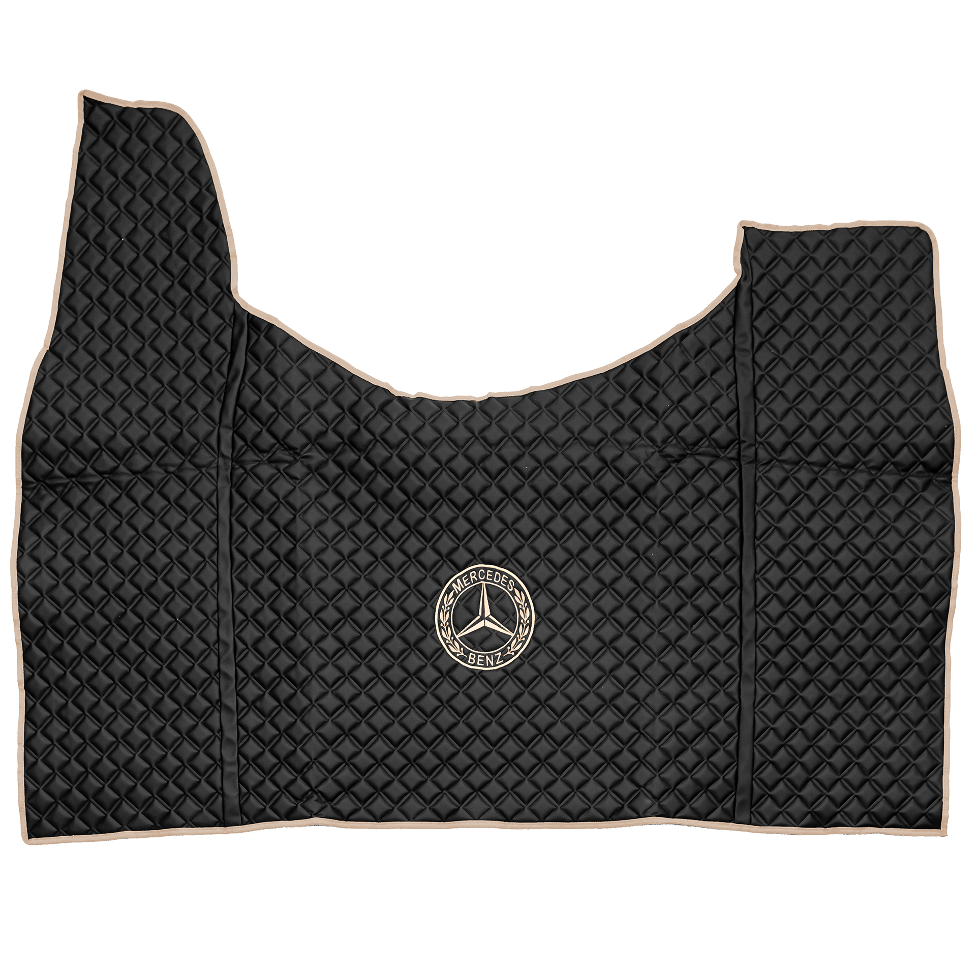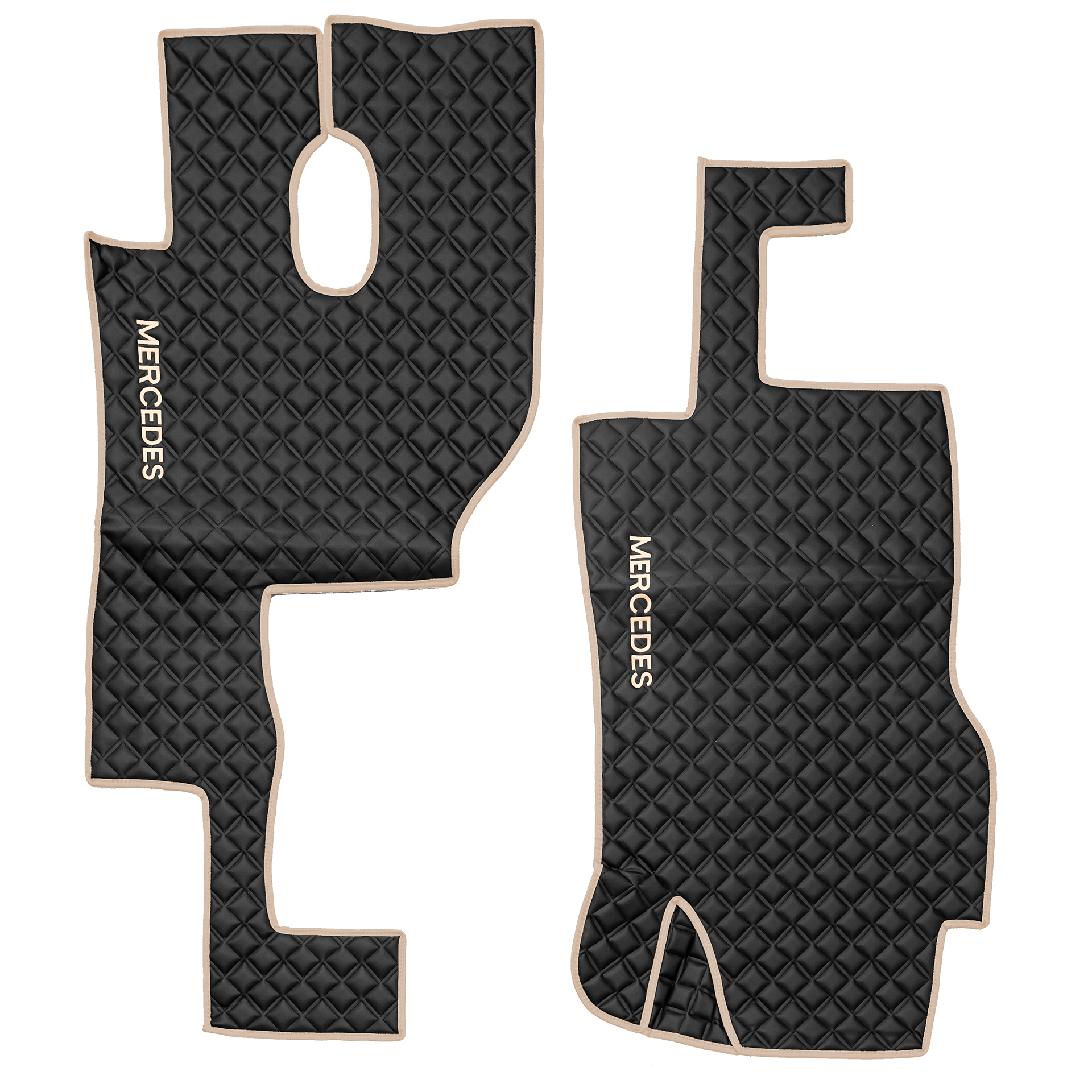 Ковры MERCEDES Actros MP3 (автомат) с шахтой (экокожа, черный, бежевый кант, бежевая вышивка)