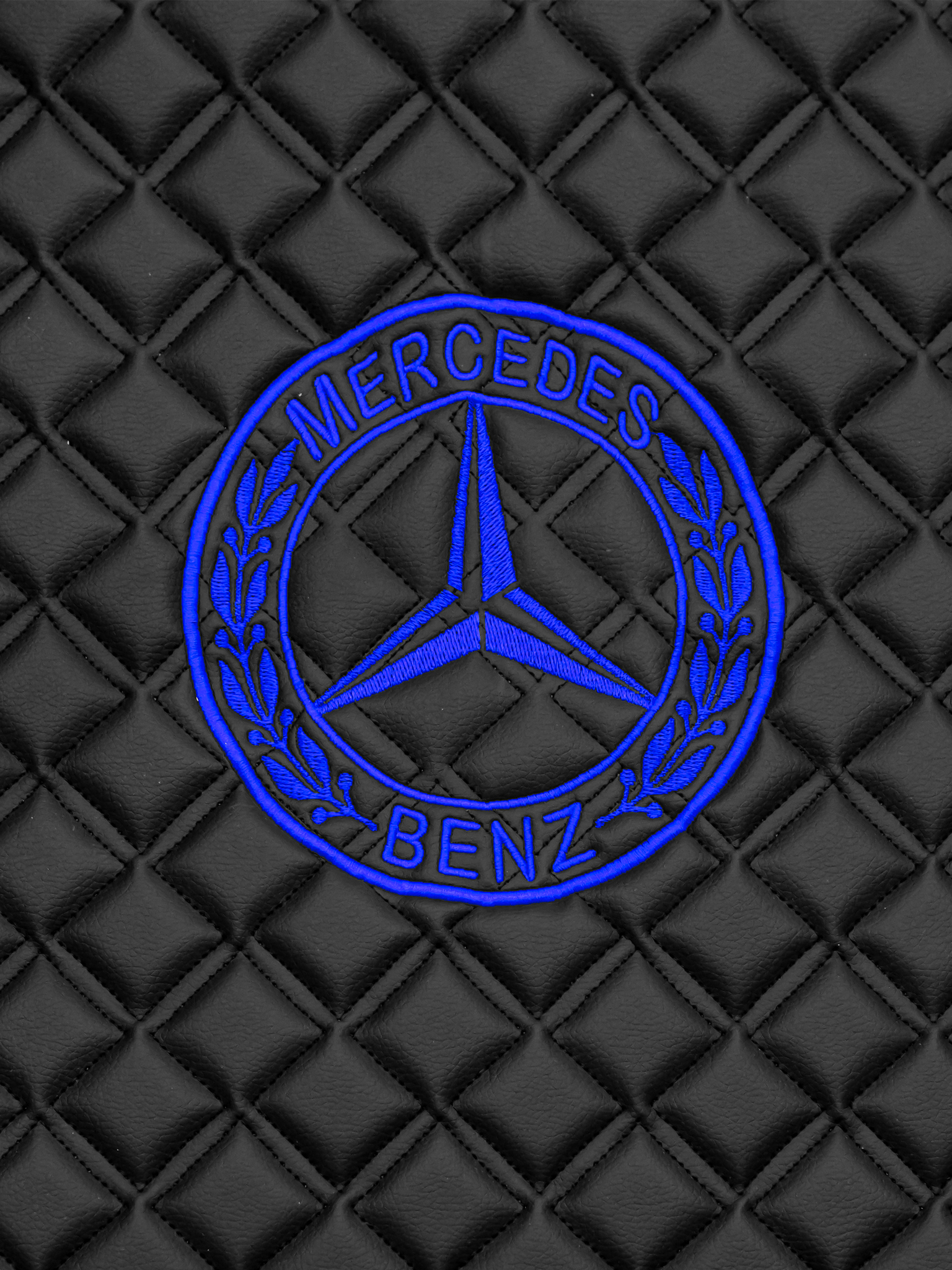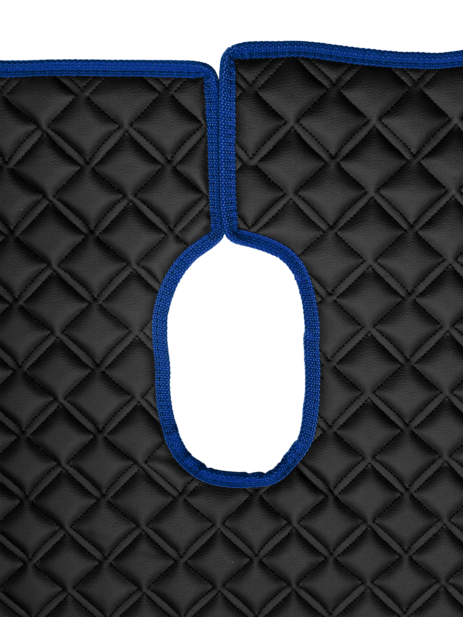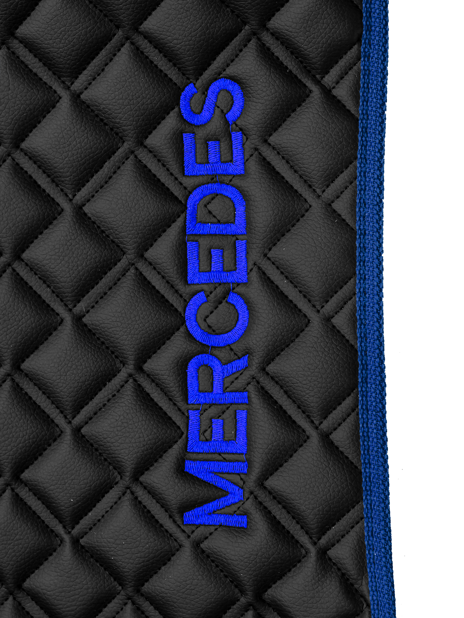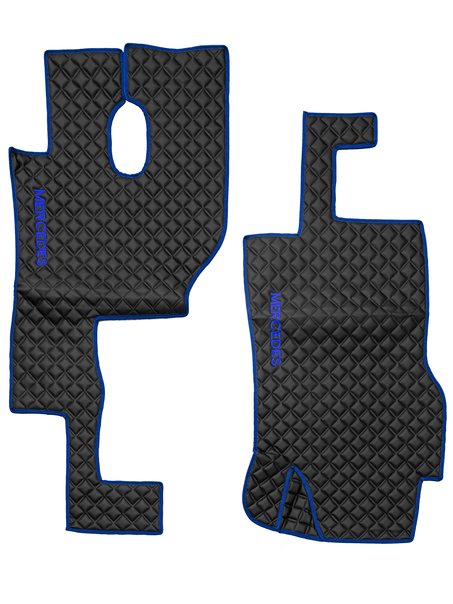 Ковры MERCEDES Actros MP3 (автомат) с шахтой (экокожа, черный, синий кант, синяя вышивка)