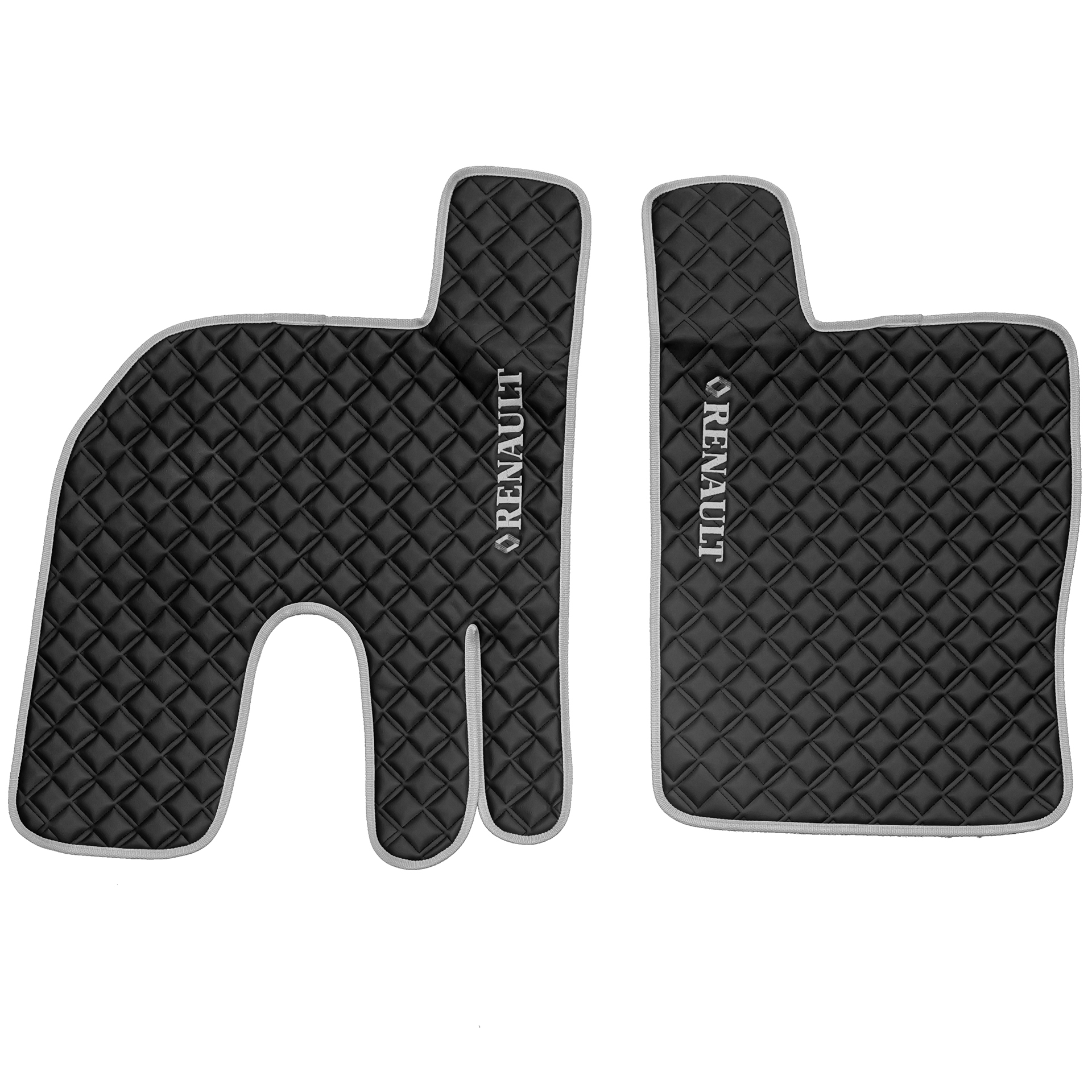 Ковры RENAULT T (автомат) (экокожа, черный, серый кант, серая вышивка)