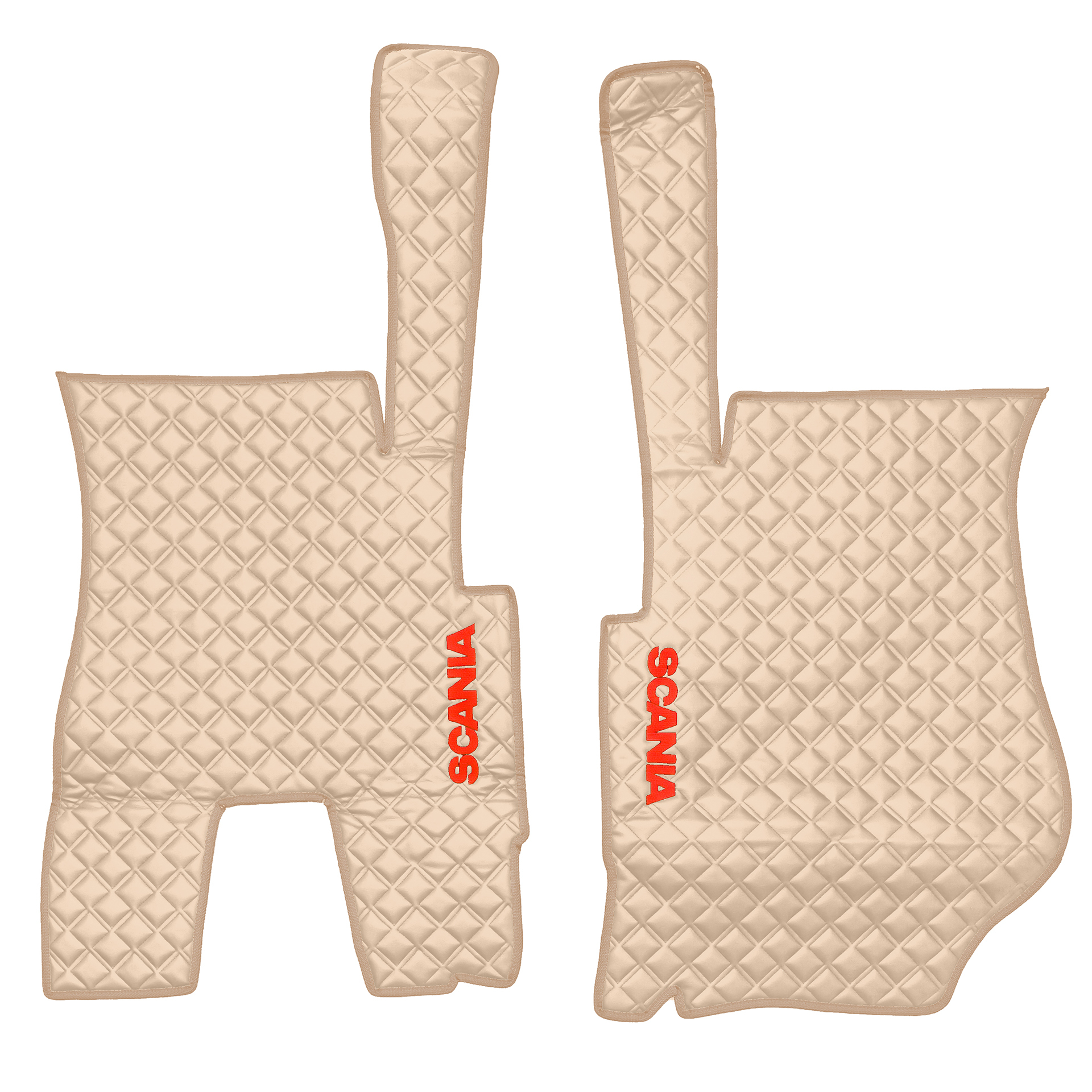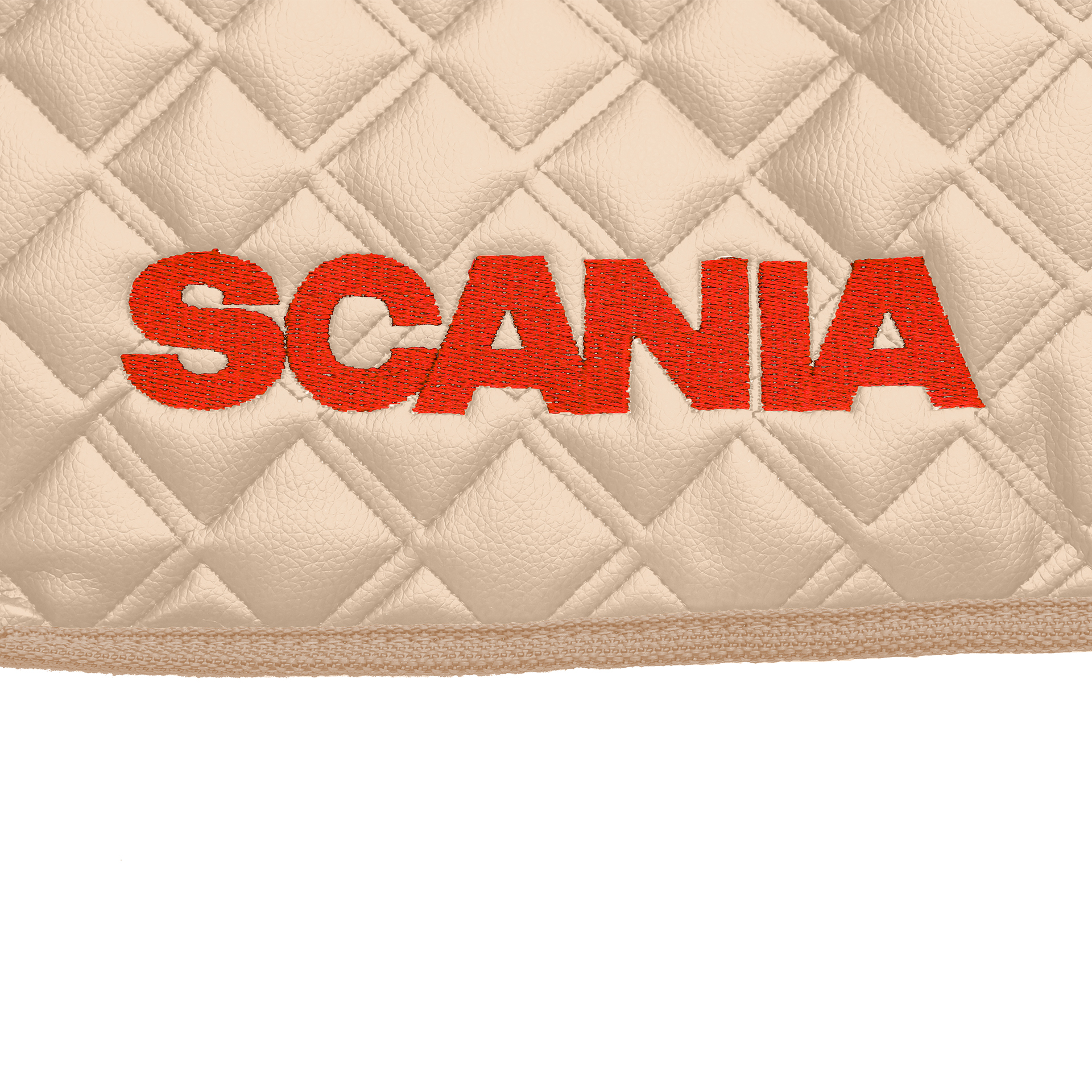 Ковры SCANIA 5 серии Р (автомат) (экокожа, бежевый, бежевый кант, красная вышивка)