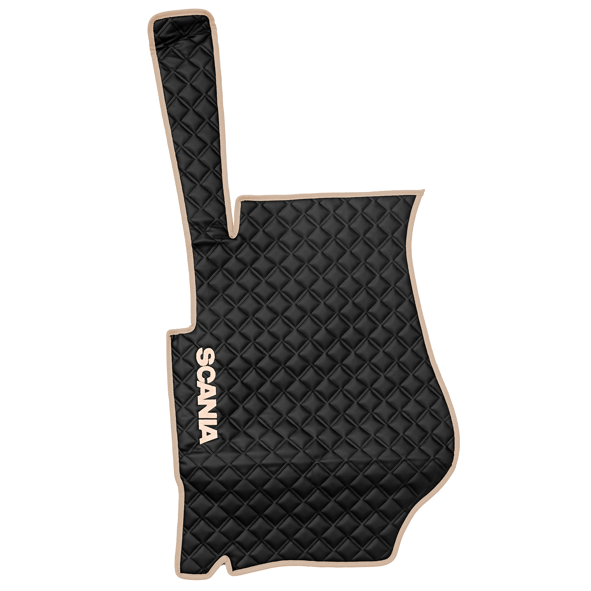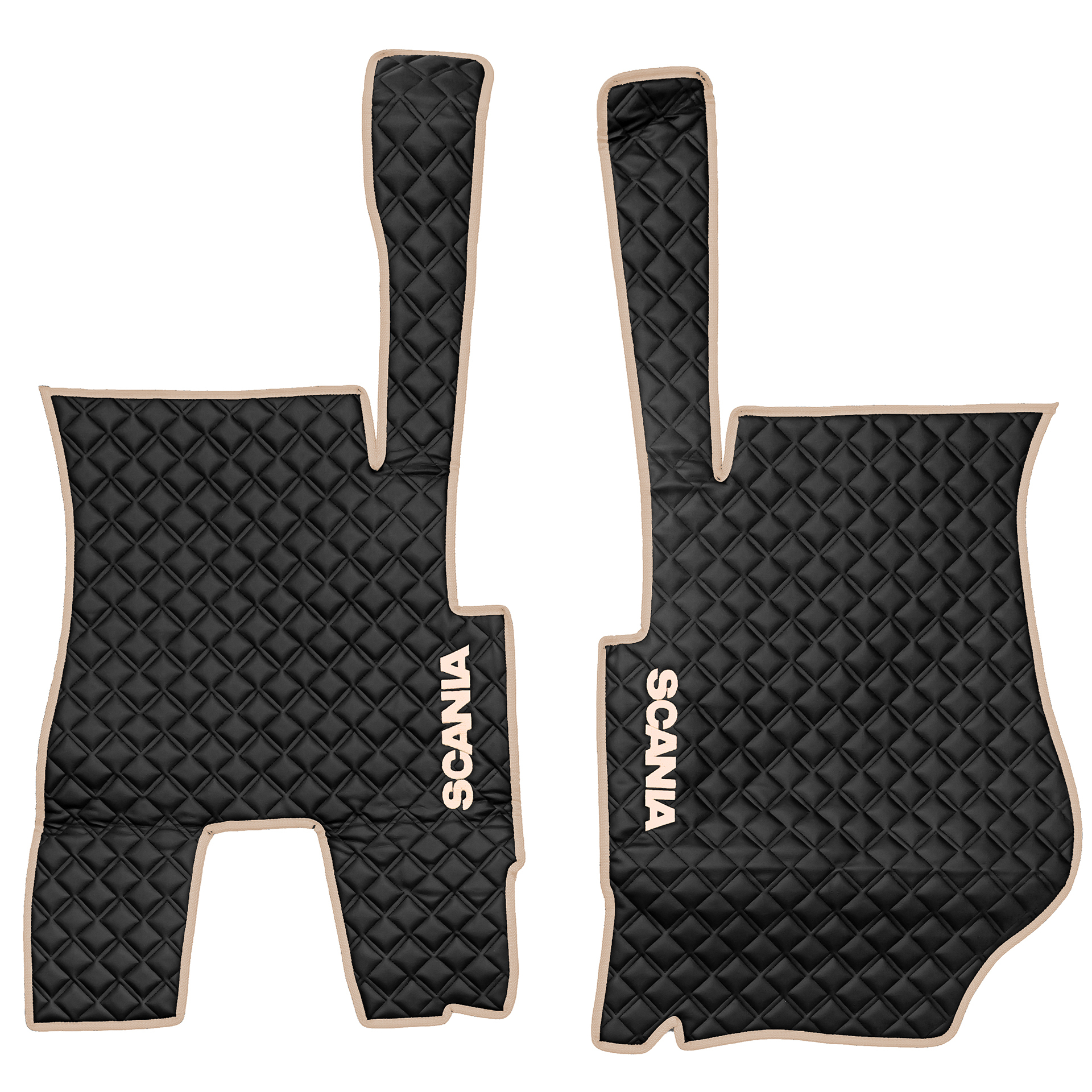 Ковры SCANIA 5 серии Р (автомат) (экокожа, черный, бежевый кант, бежевая вышивка)