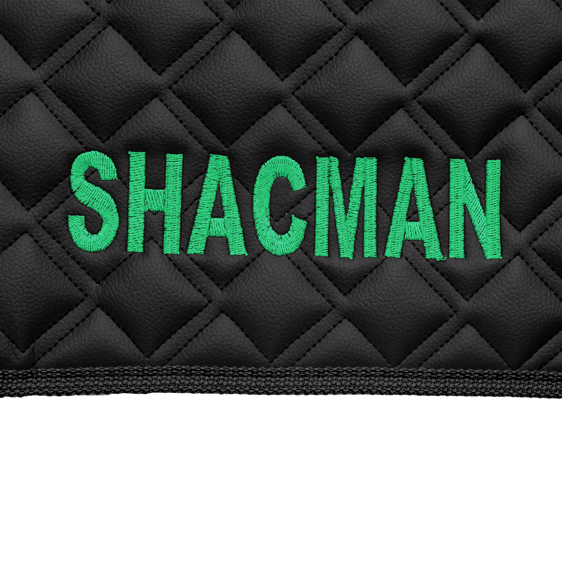 Ковры SHACMAN F3000 (экокожа, черный, черный кант, зеленая вышивка)