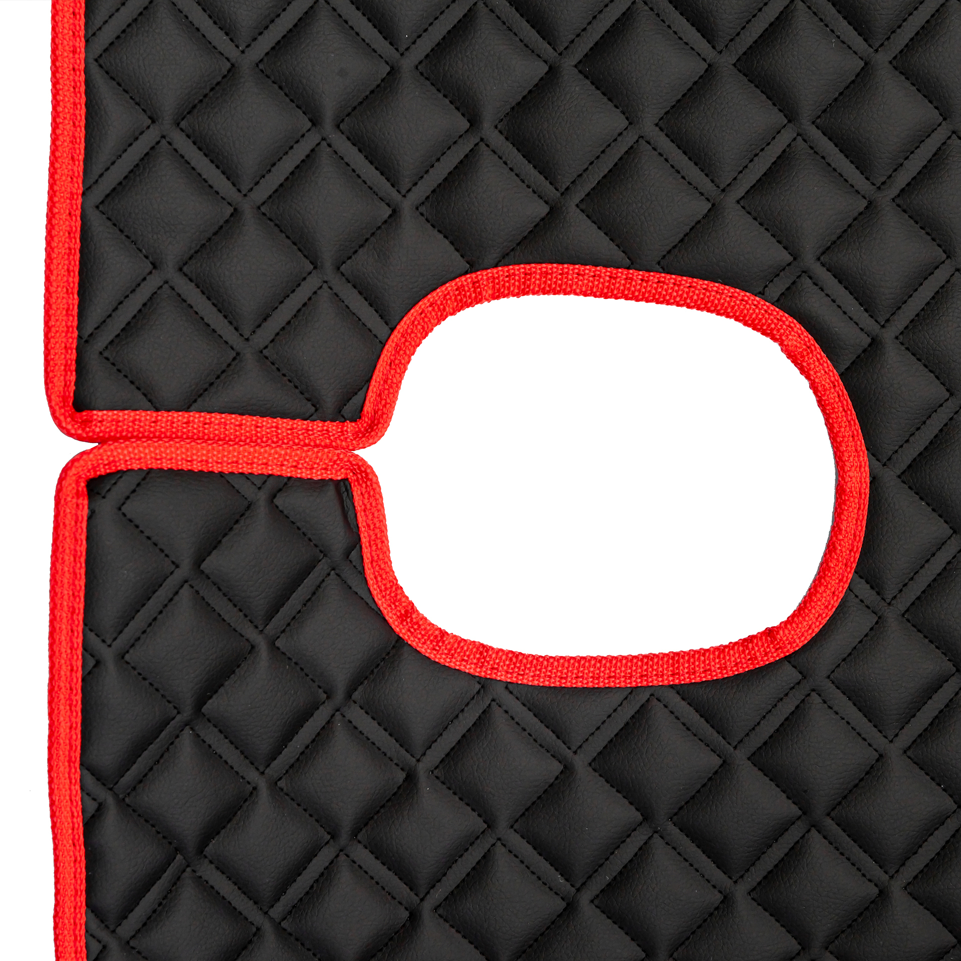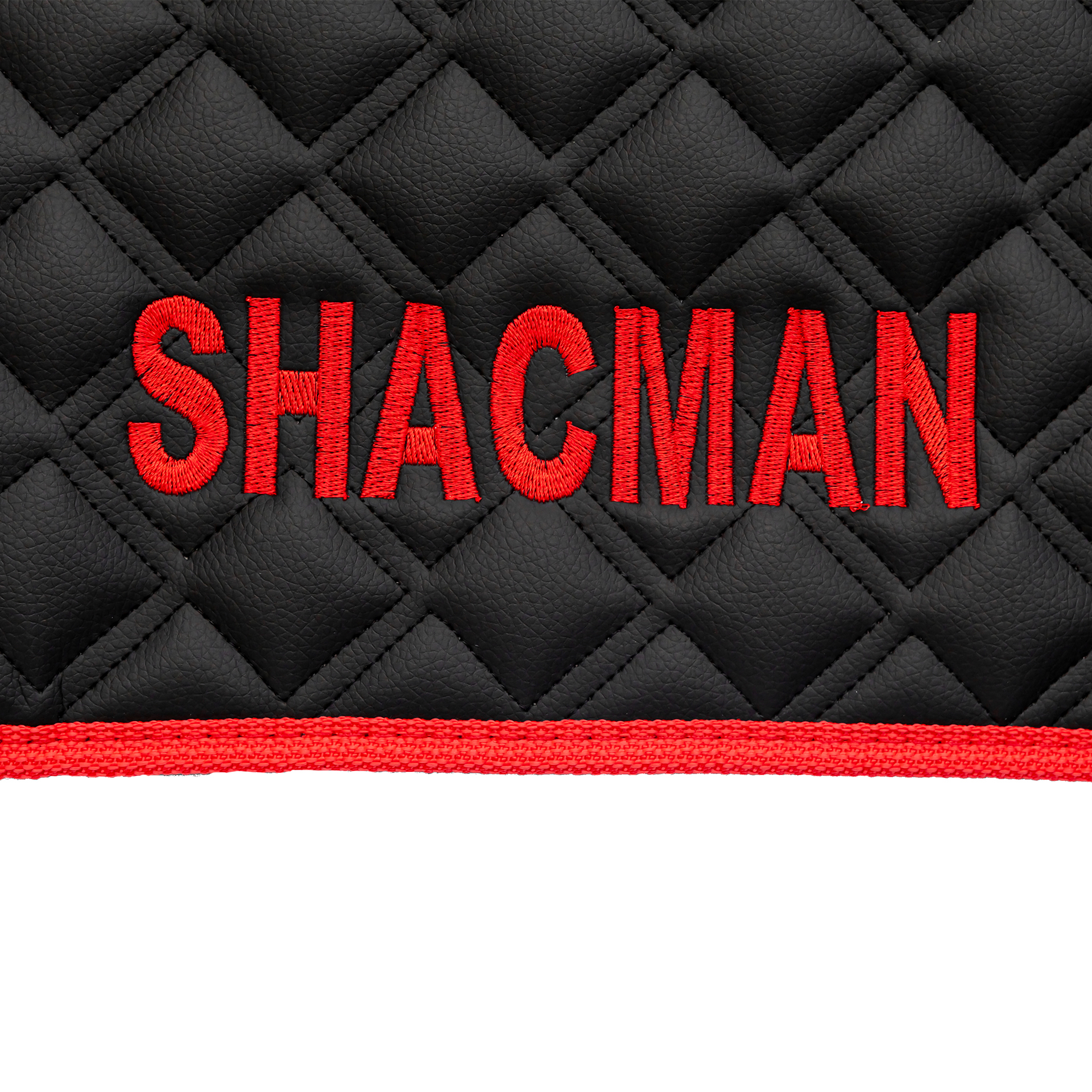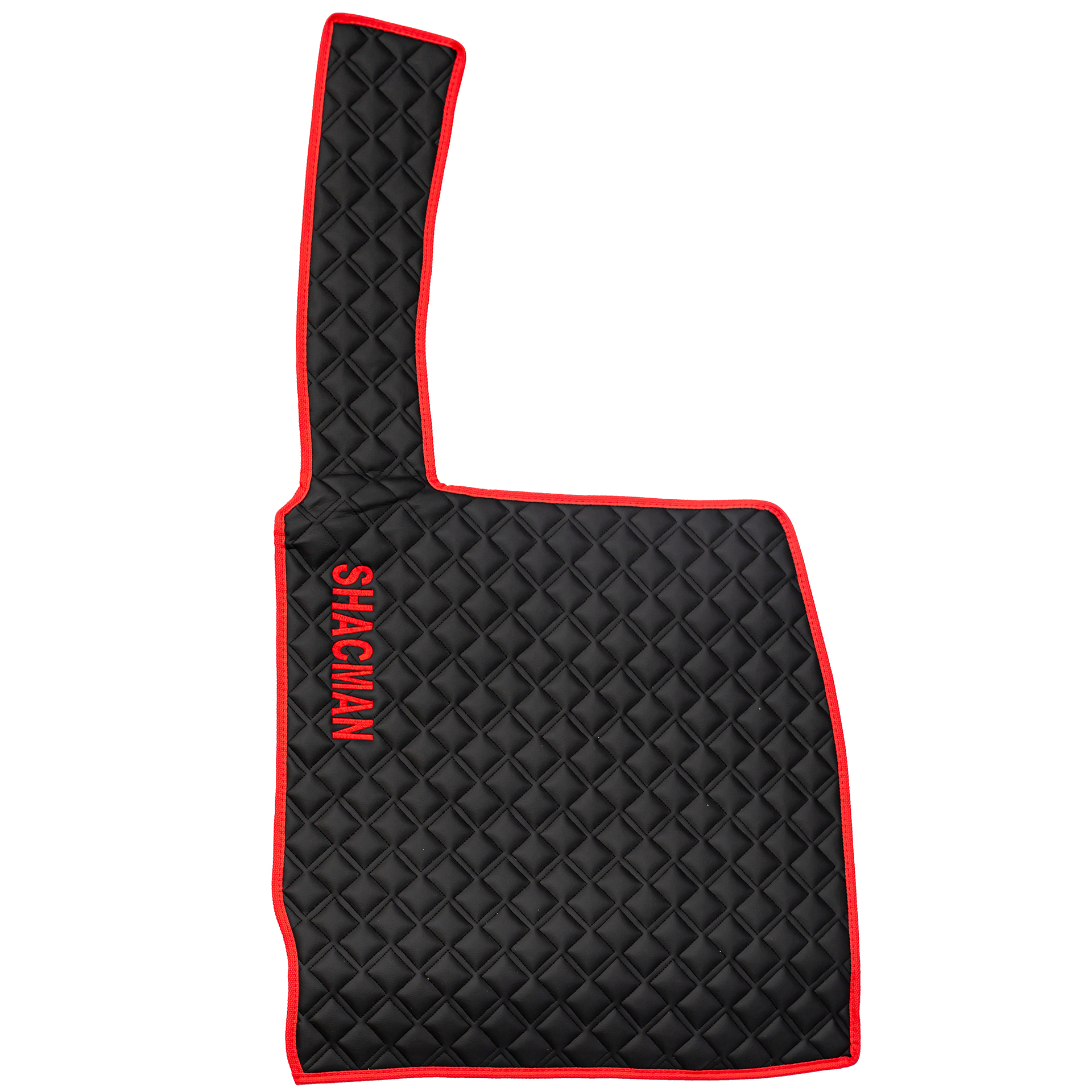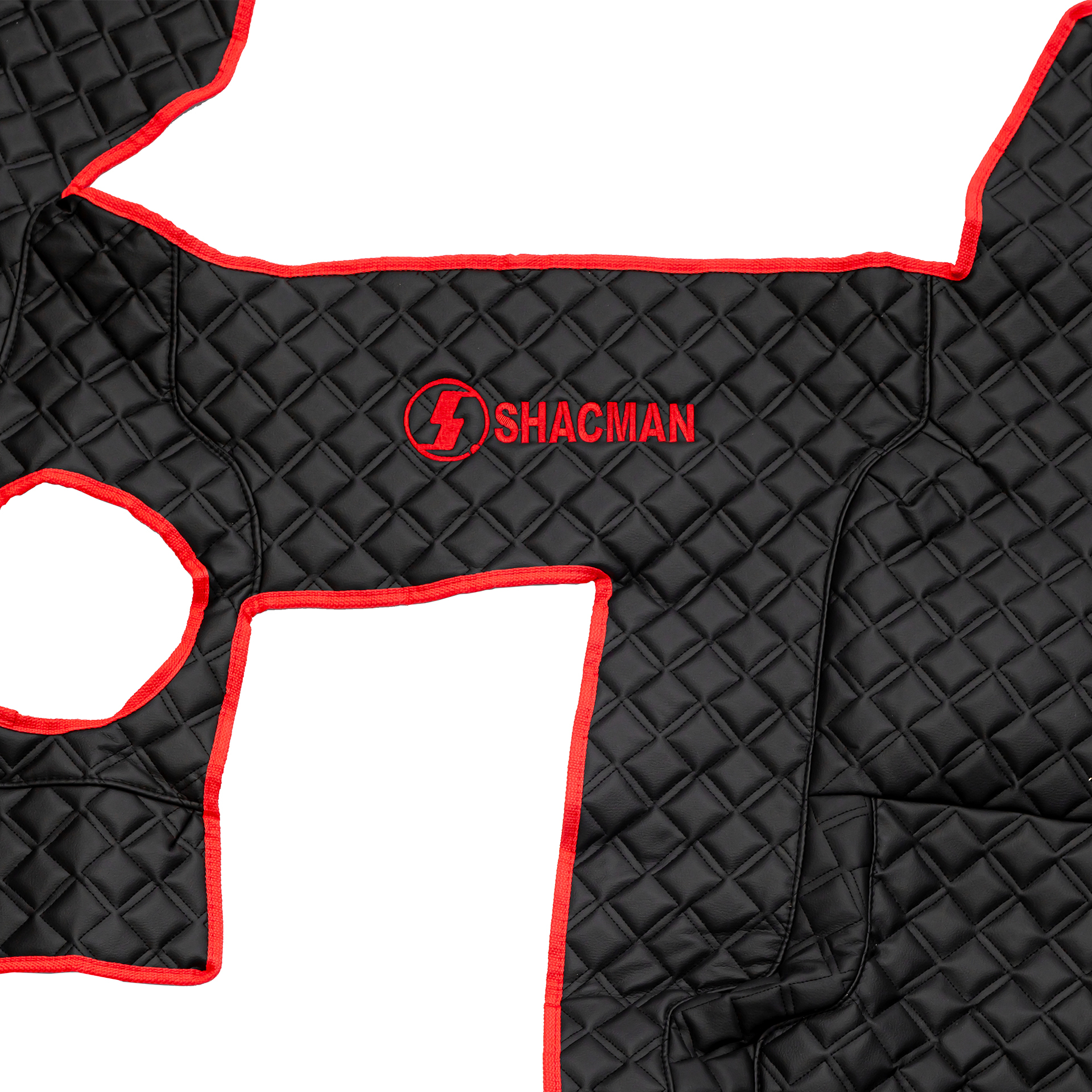 Ковры SHACMAN F3000 (экокожа, черный, красный кант, красная вышивка)