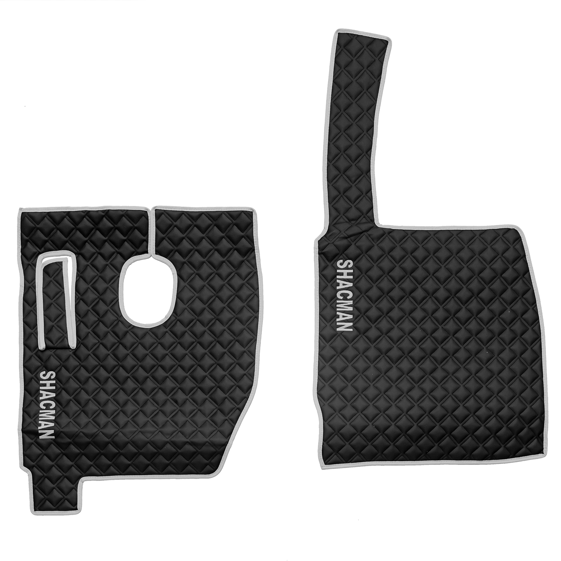 Ковры SHACMAN F3000 (экокожа, черный, серый кант, серая вышивка)