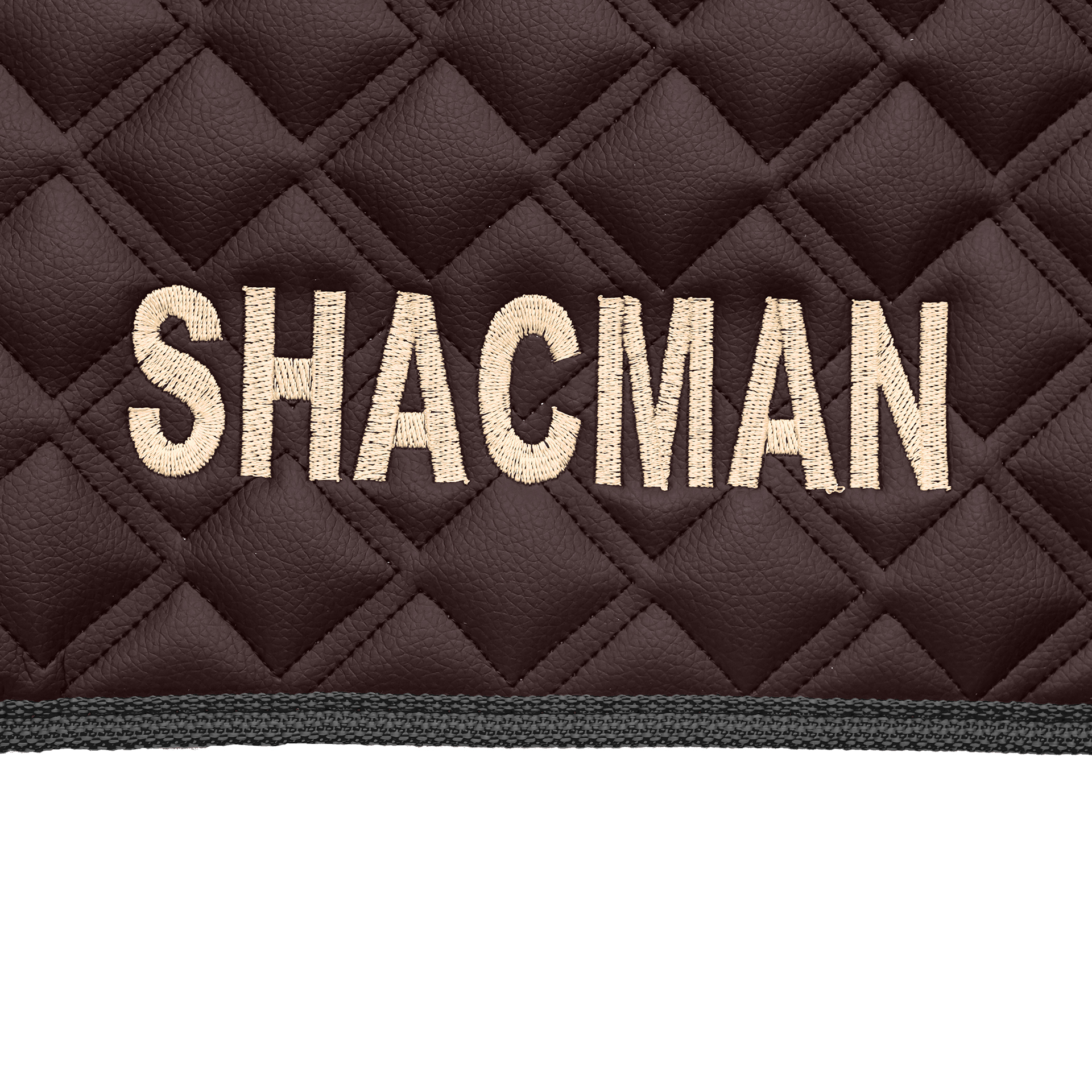 Ковры SHACMAN F3000 (экокожа, коричневый, черный кант, бежевая вышивка)