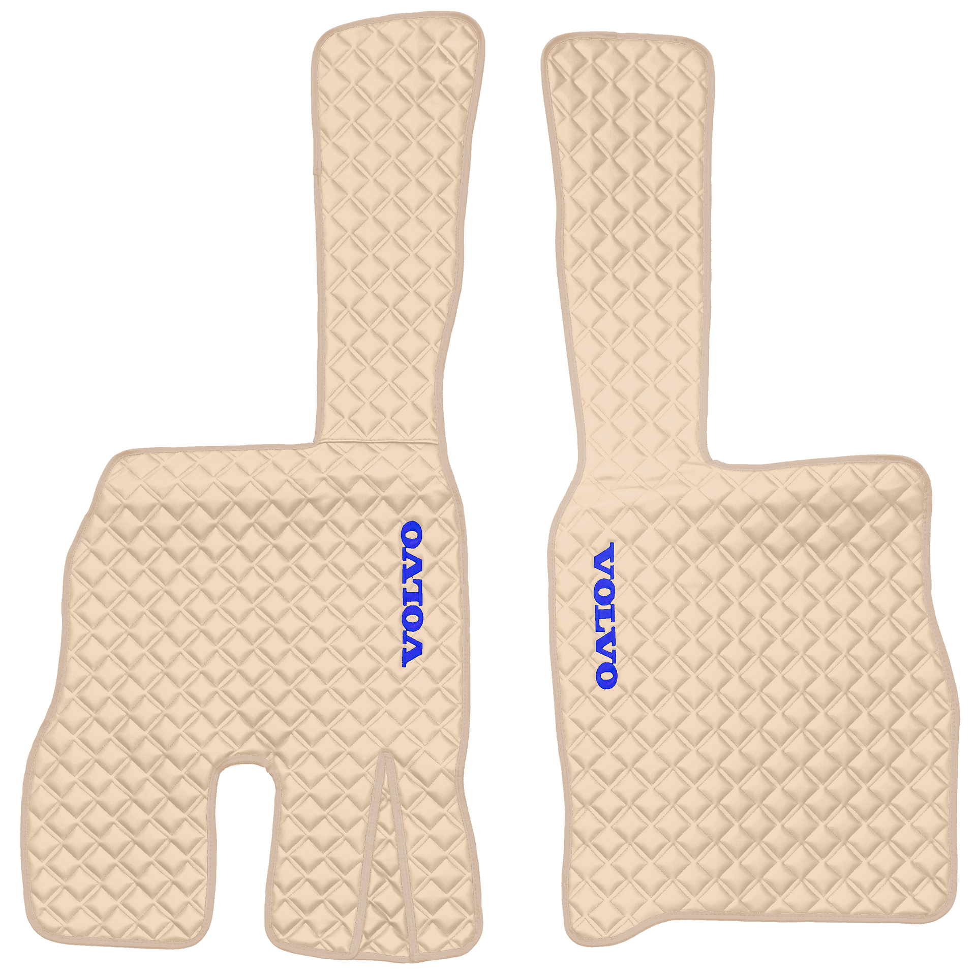 Ковры VOLVO FM до 2008 года (экокожа, бежевый, бежевый кант, синяя вышивка)