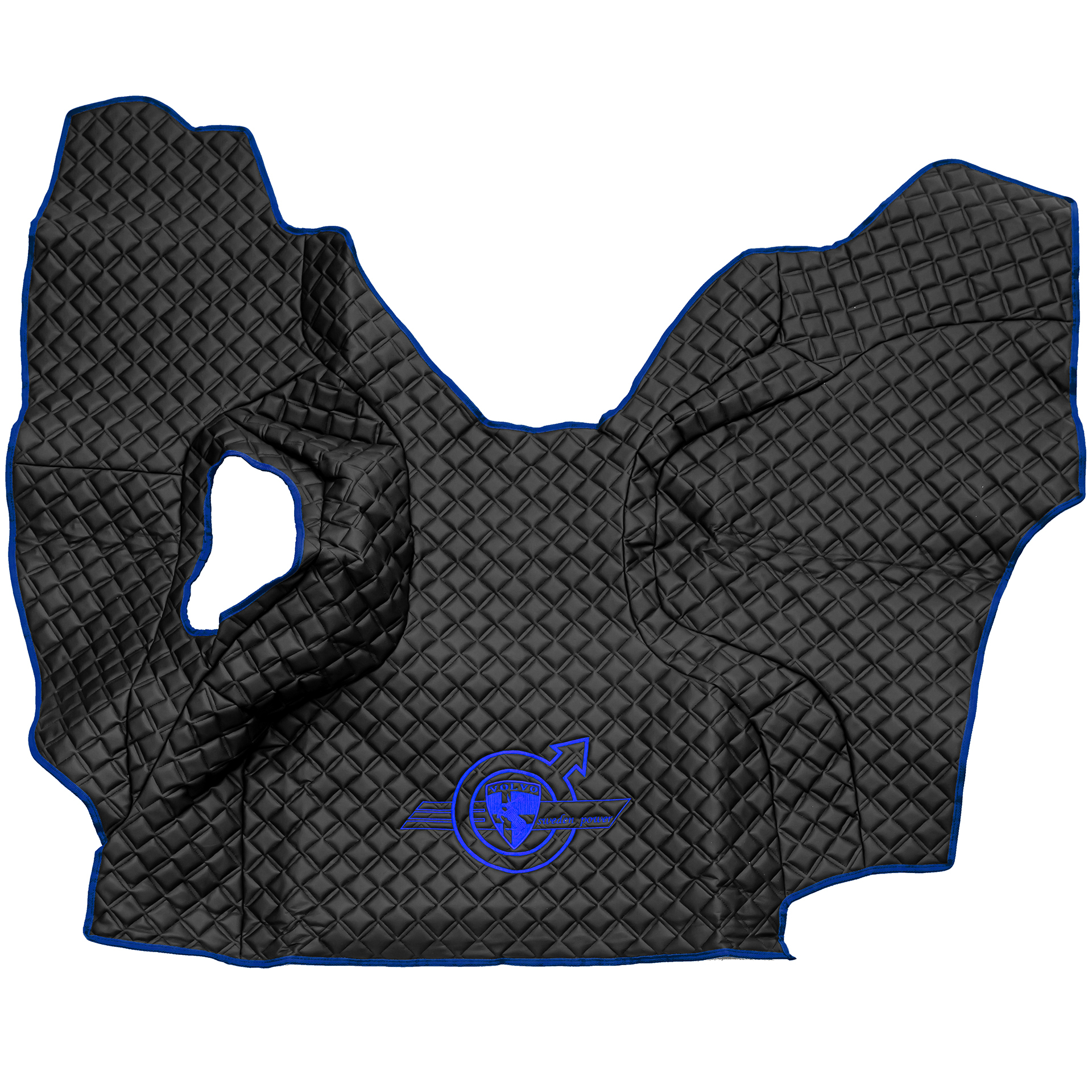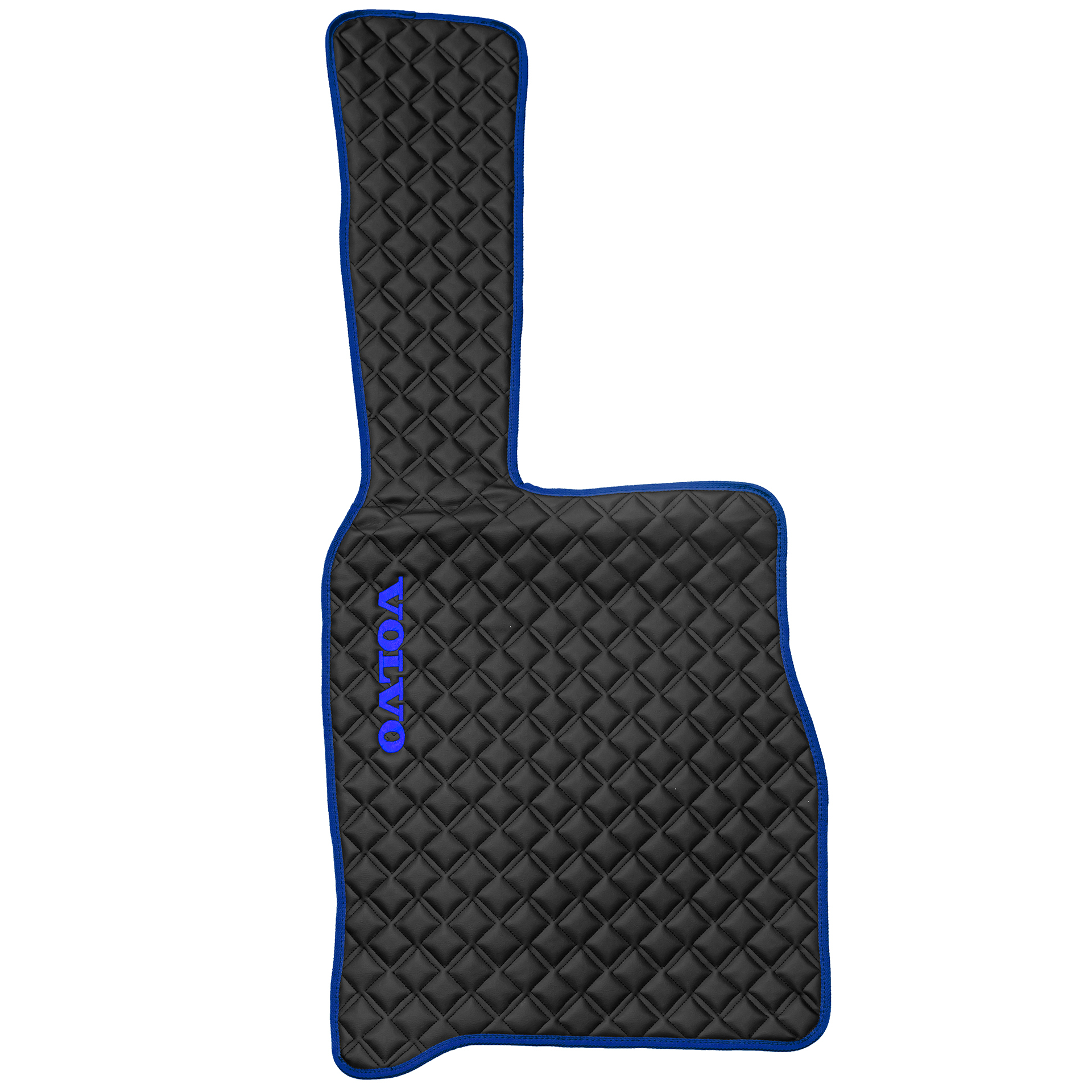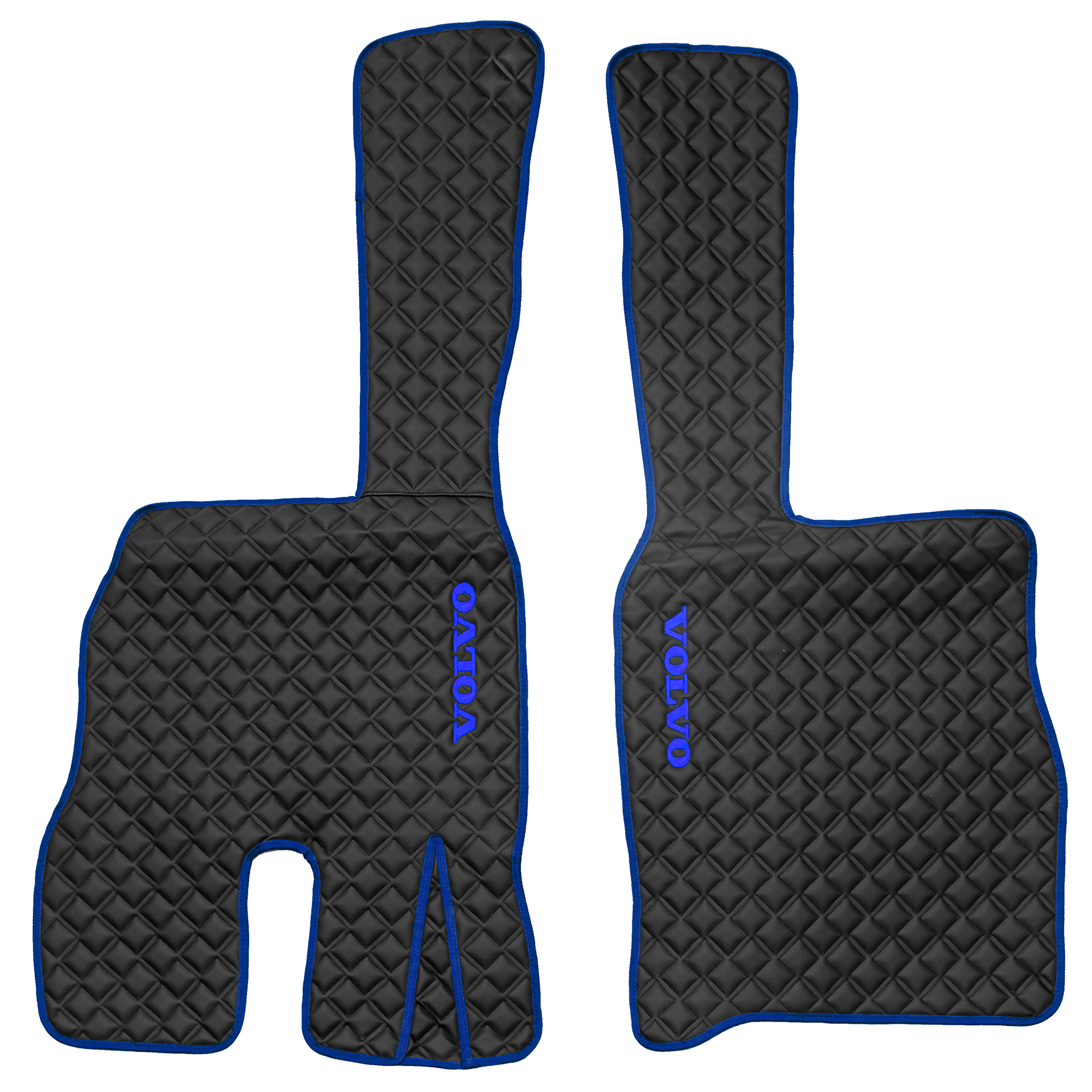 Ковры VOLVO FM до 2008 года (экокожа, черный, синий кант, синяя вышивка)