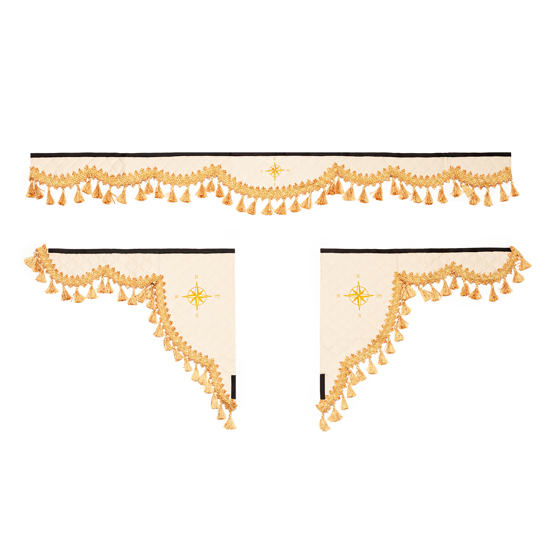 Ламбрекен для лобового стекла + Косынки на боковые стекла для грузовых а/м с вышивкой «Роза Ветров».