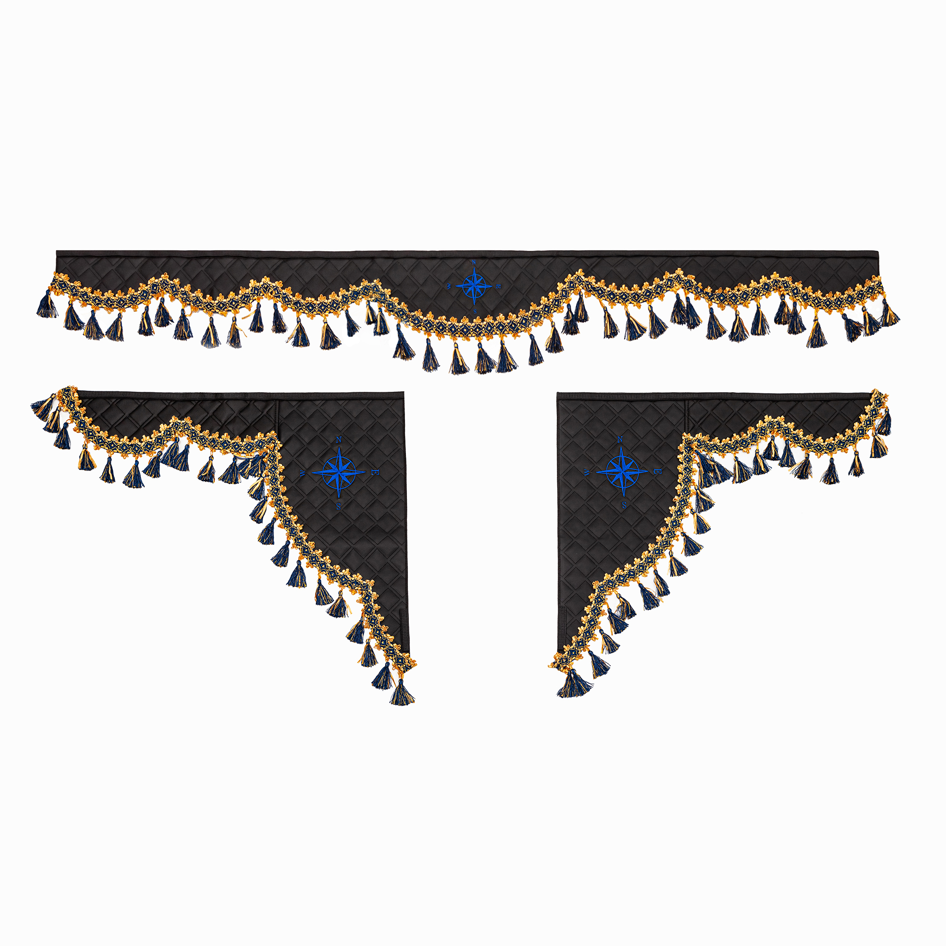 Ламбрекен для лобового стекла + Косынки на боковые стекла для грузовых а/м с вышивкой «Роза Ветров».