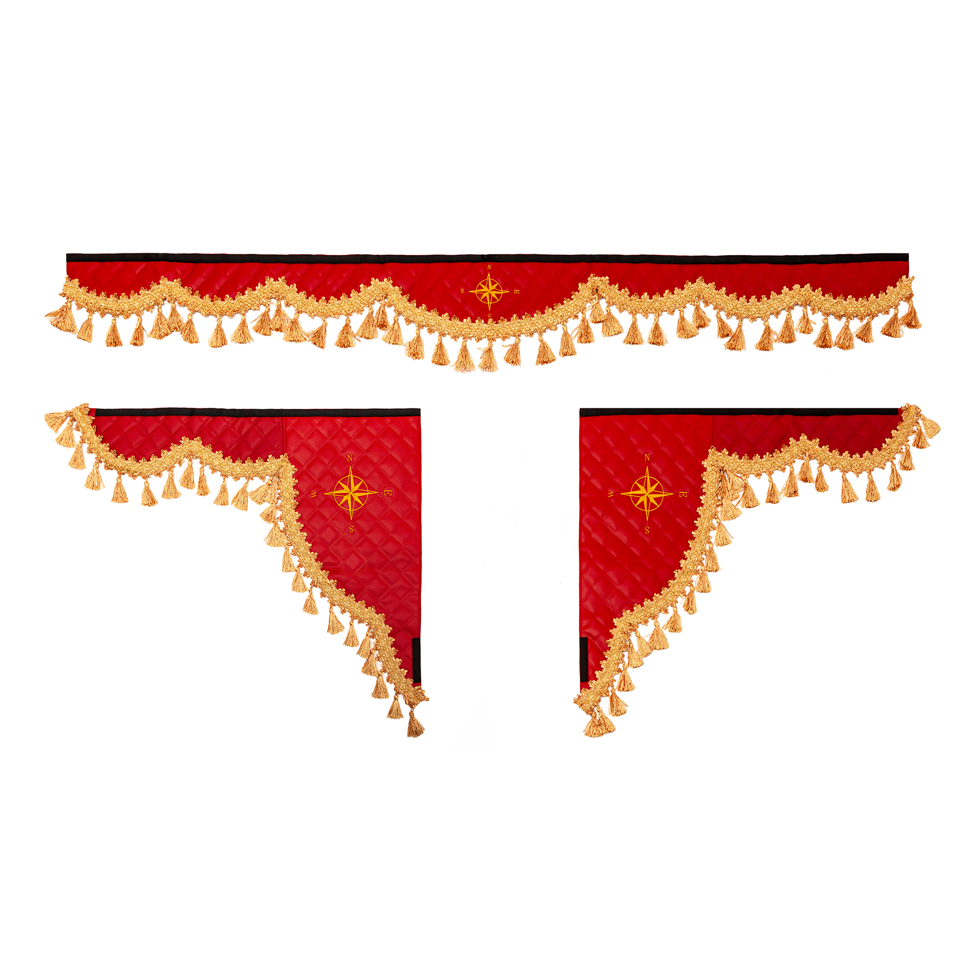 Ламбрекен для лобового стекла + Косынки на боковые стекла для грузовых а/м с вышивкой «Роза Ветров».