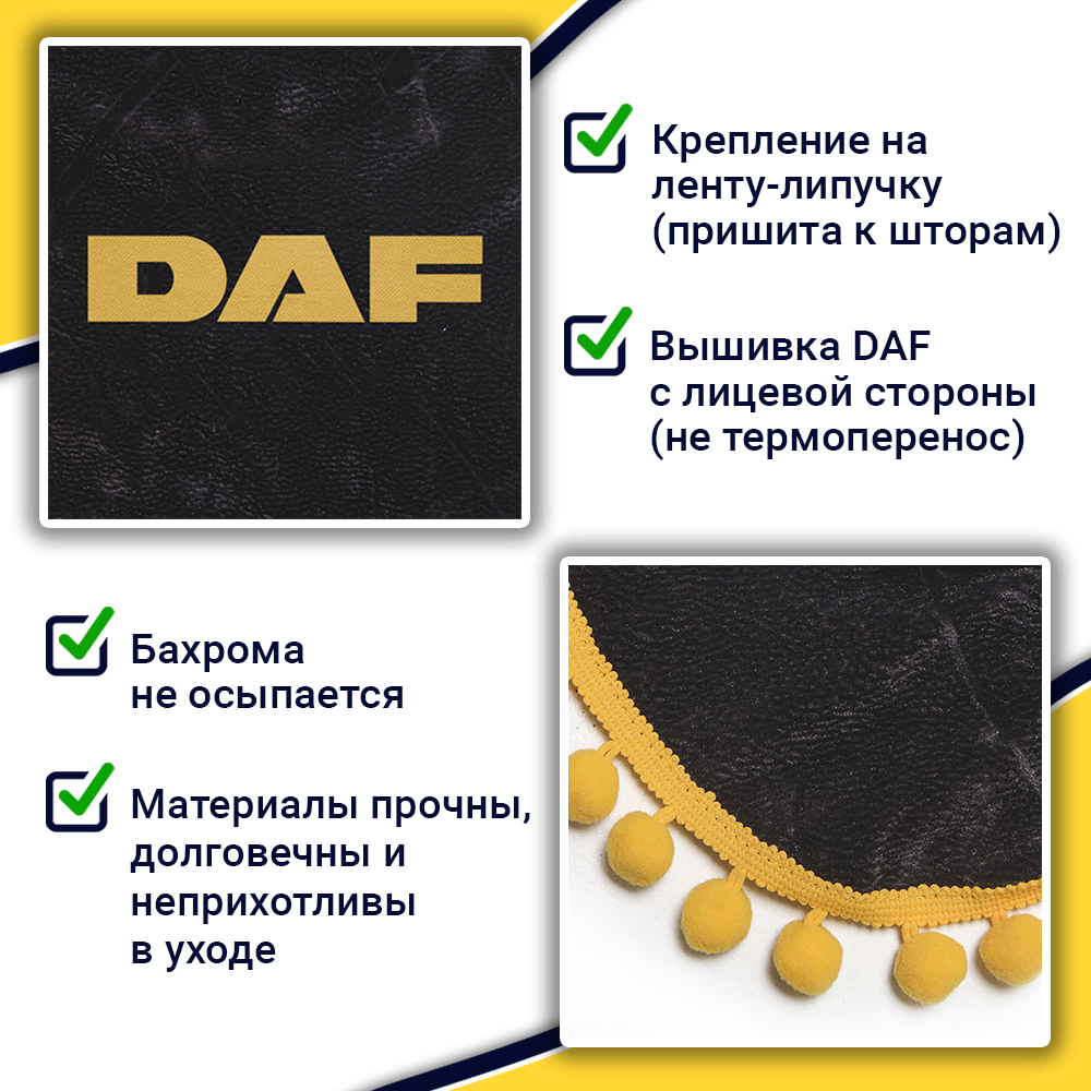 • Ширина лобового ламбрекена 225 см – подходит для седельных тягачей, одиночек и самосвалов Daf.