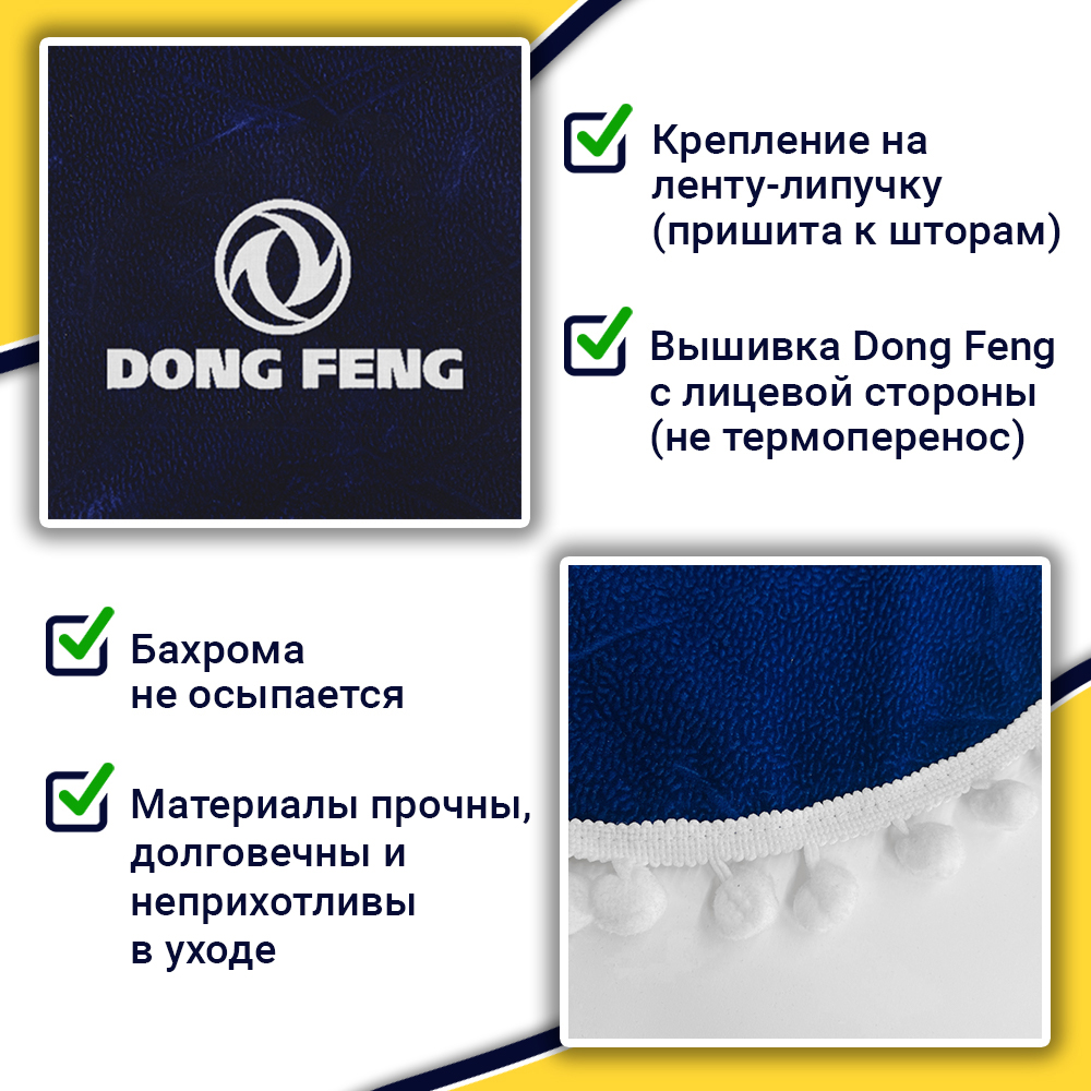 • Ширина лобового ламбрекена 225 см – подходит для седельных тягачей, одиночек и самосвалов Dongfeng.
