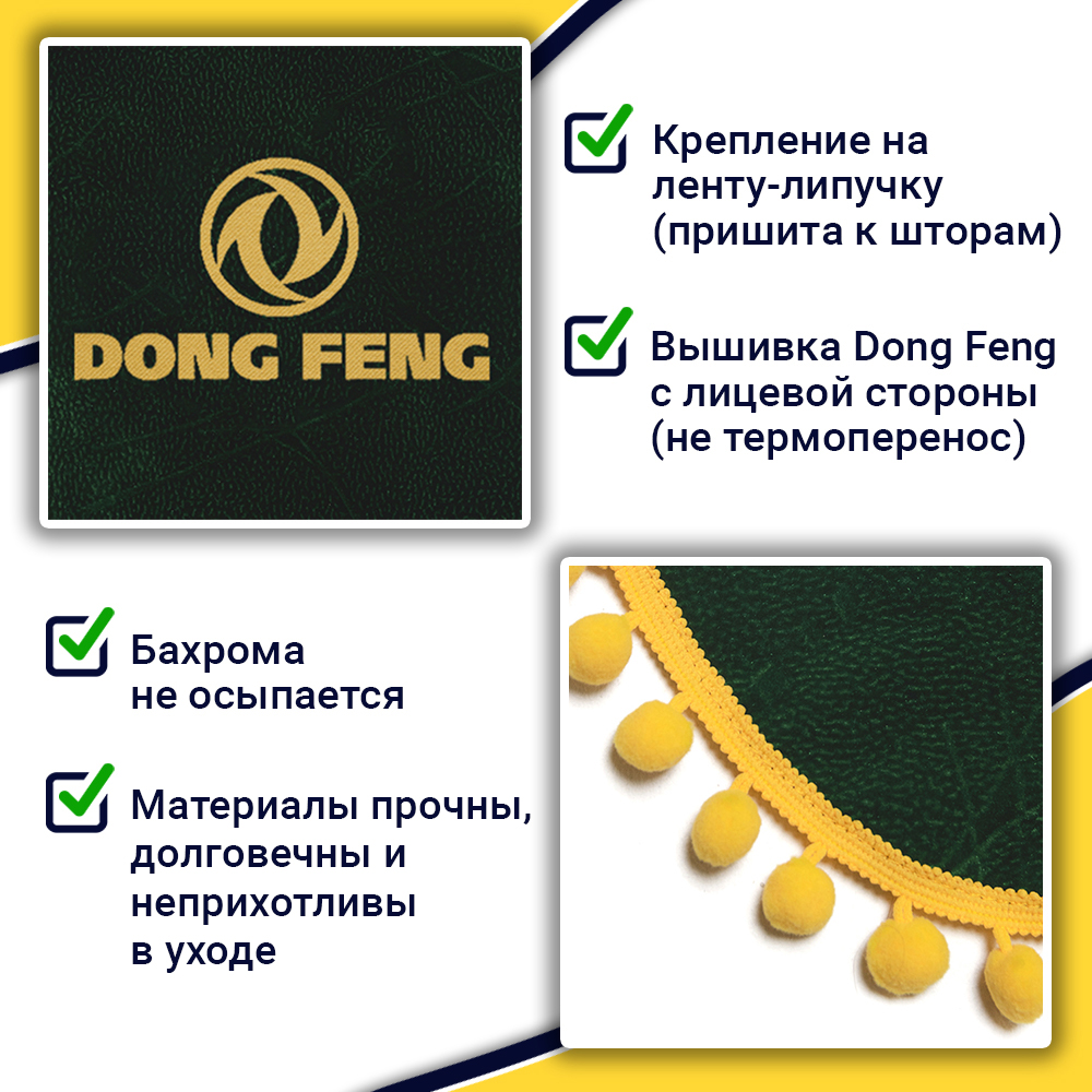 • Ширина лобового ламбрекена 225 см – подходит для седельных тягачей, одиночек и самосвалов Dongfeng.