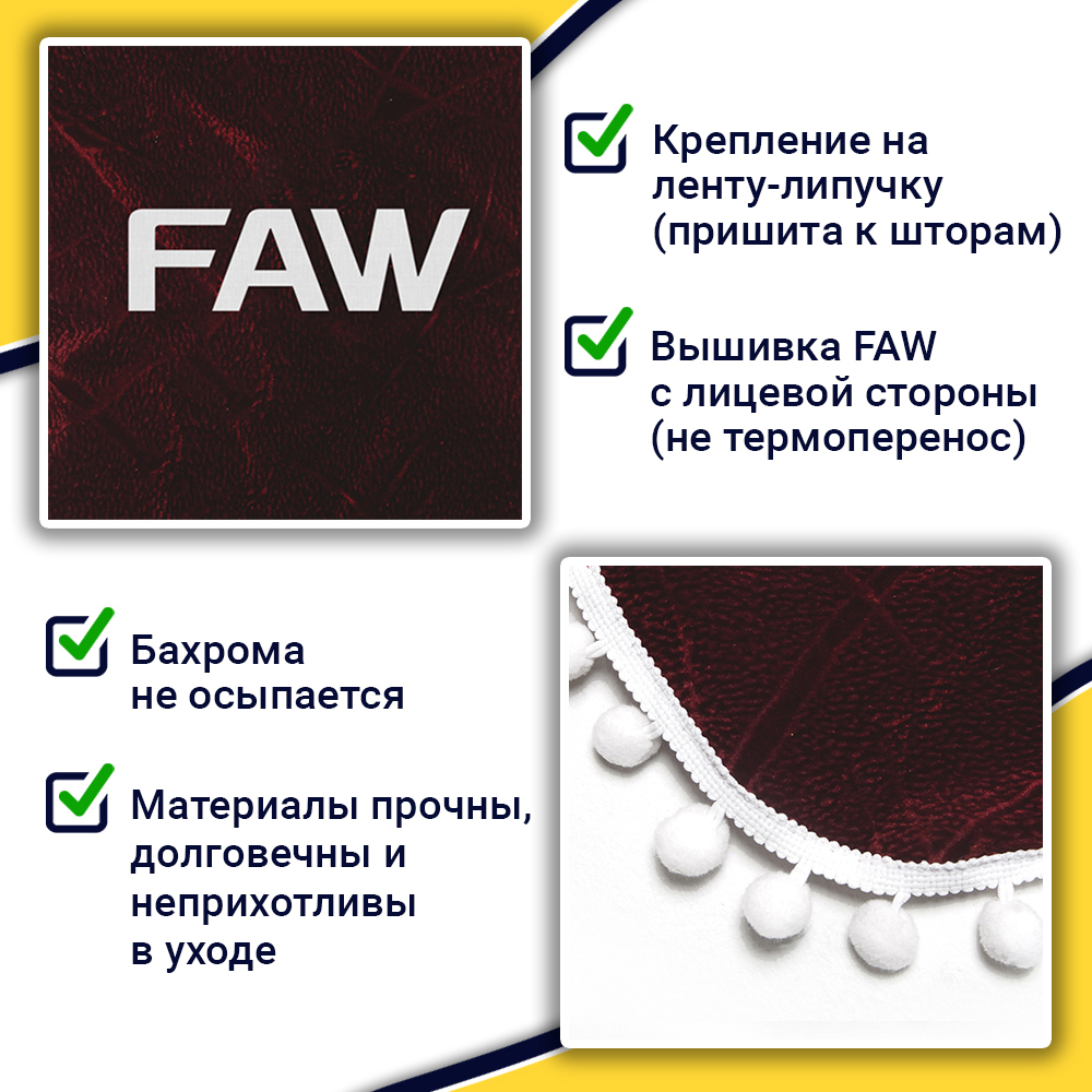 • Ширина лобового ламбрекена 225 см – подходит для седельных тягачей, одиночек и самосвалов FAW.