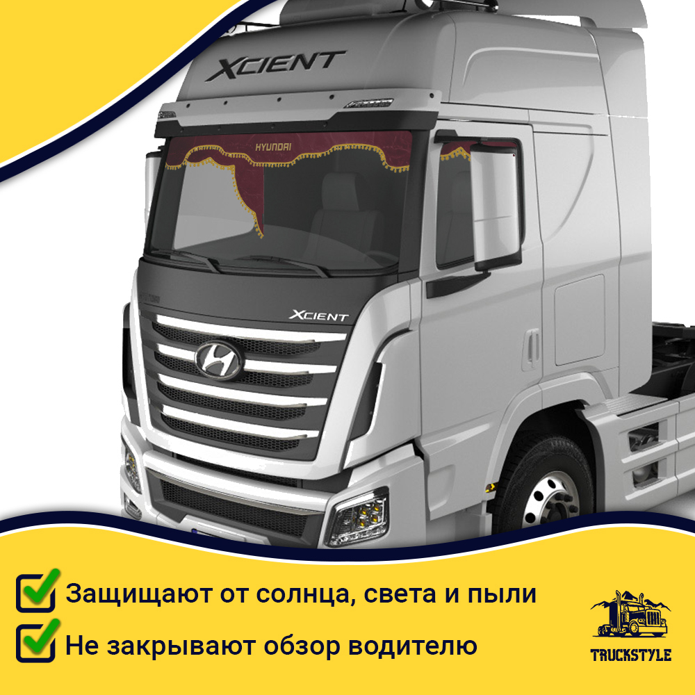 • Ширина лобового ламбрекена 225 см – подходит для седельных тягачей, одиночек и самосвалов Hyundai.