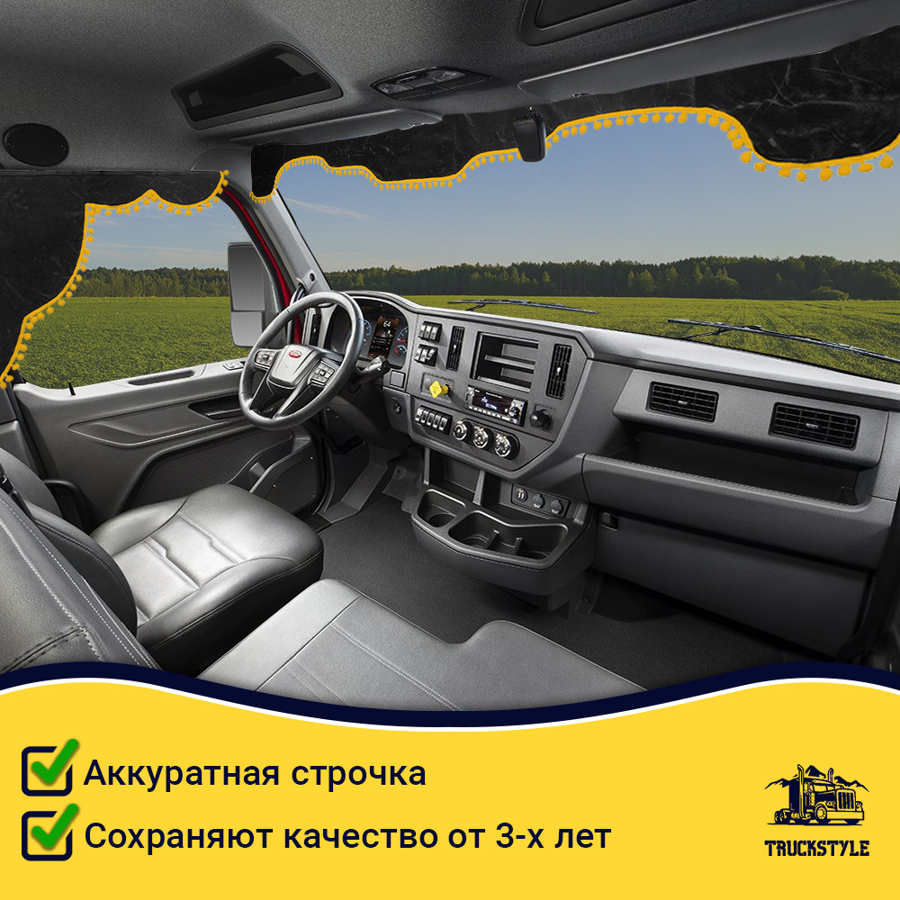 • Данный комплект аксессуаров для грузовика, с одной стороны, блокирует солнечные лучи и снижает нагрев салона, а с другой, не затрудняет обзор водителю, следовательно, безопасен в эксплуатации.