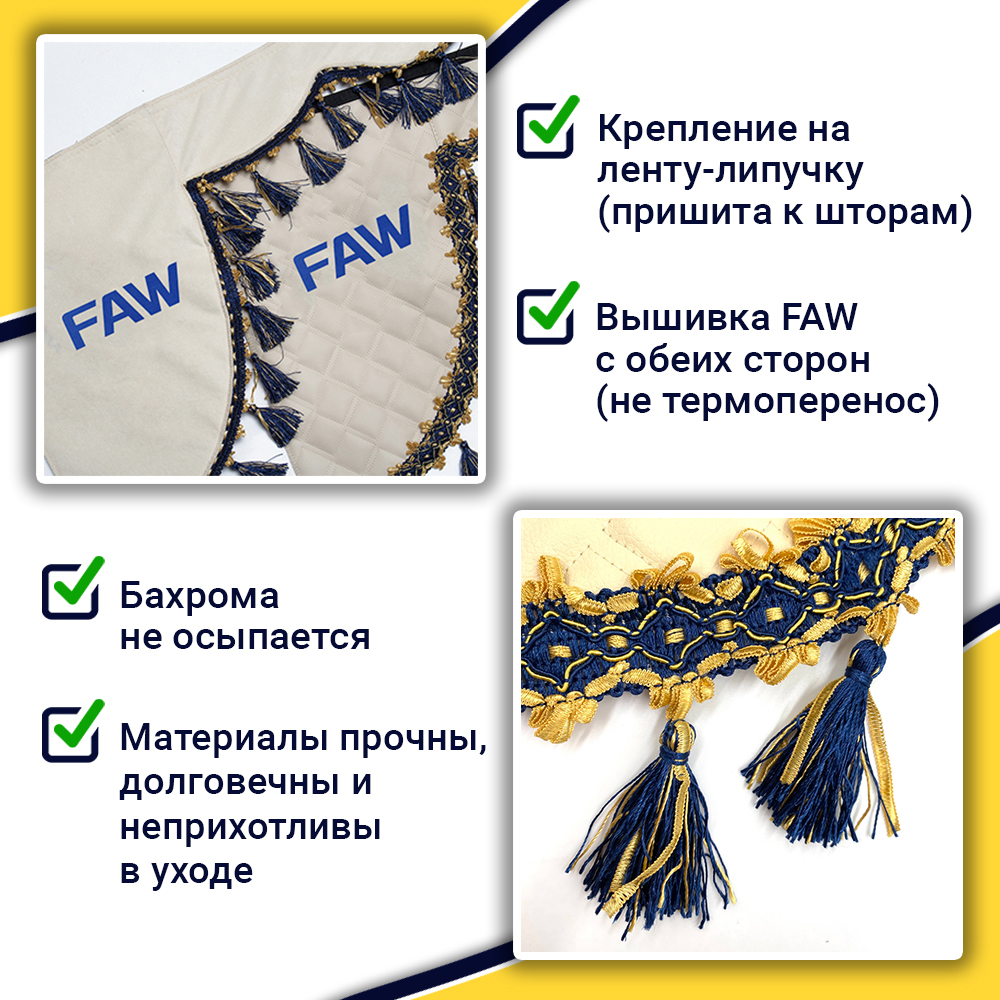 • Ширина лобового ламбрекена 225 см – подходит для седельных тягачей, одиночек и самосвалов FAW.
