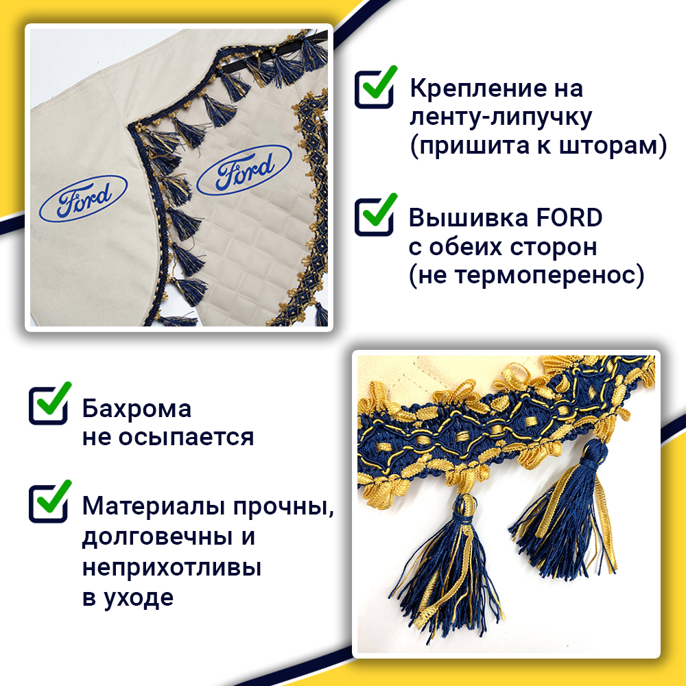 Ламбрекен для лобового стекла + Косынки на боковые стекла для а/м FORD.