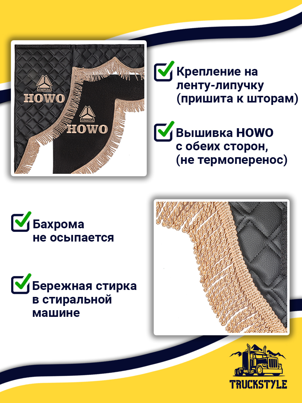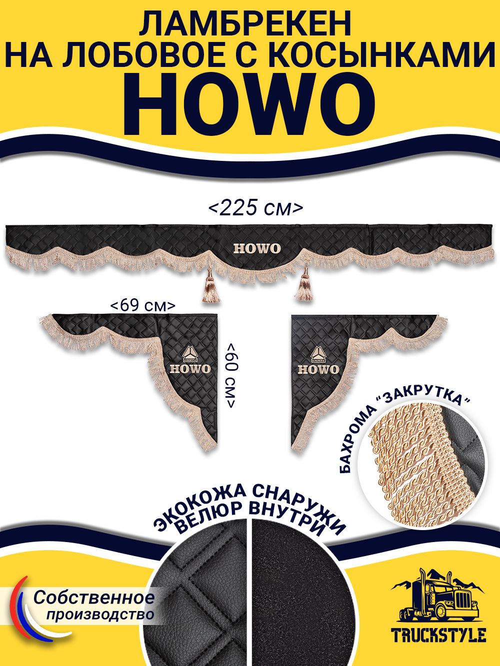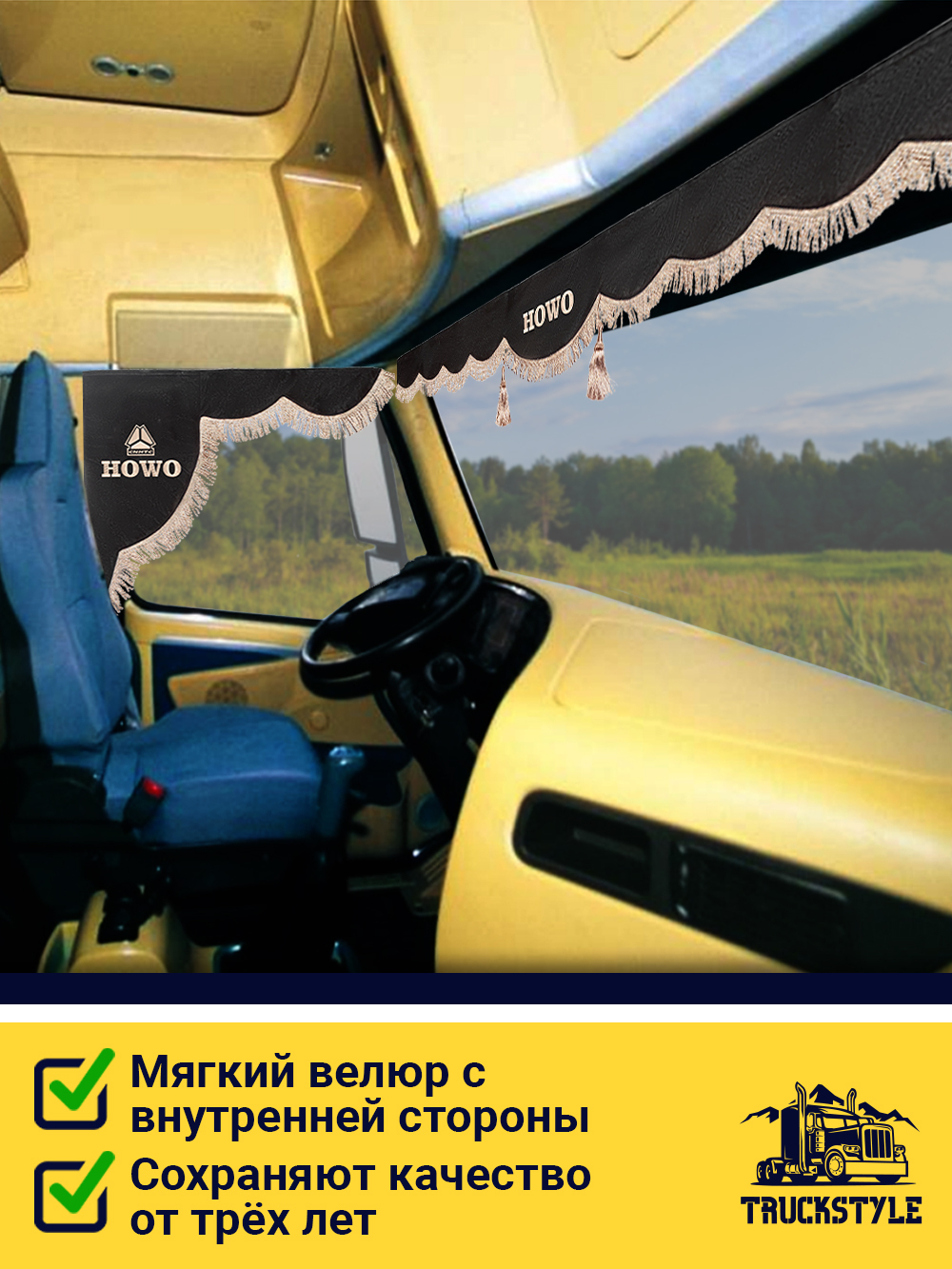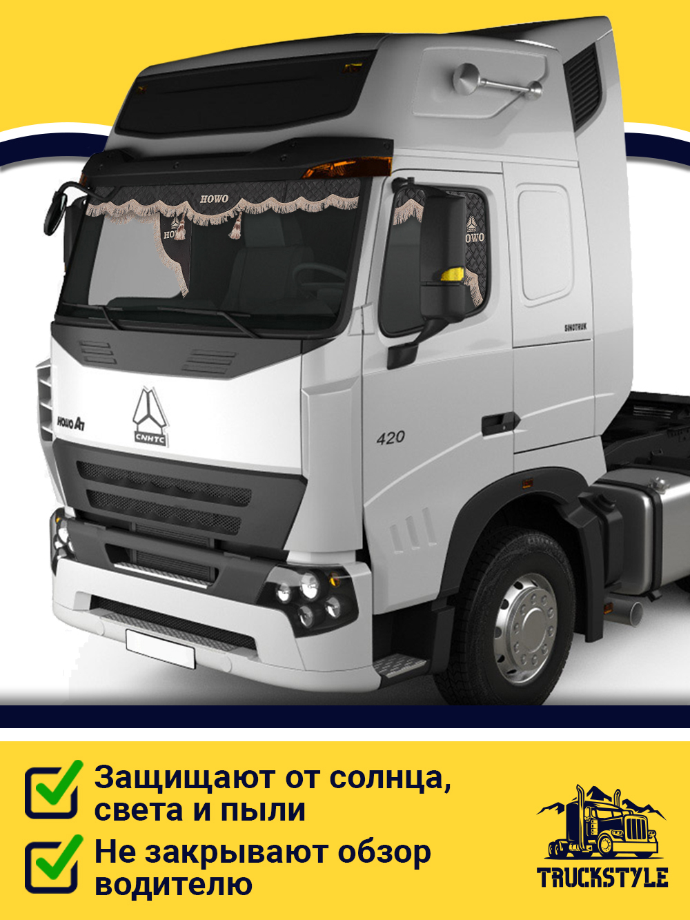 • Ширина лобового ламбрекена 225 см – подходит для седельных тягачей, одиночек и самосвалов Howo.