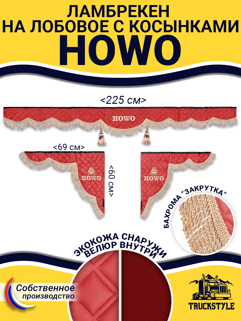 • Ширина лобового ламбрекена 225 см – подходит для седельных тягачей, одиночек и самосвалов Howo.
