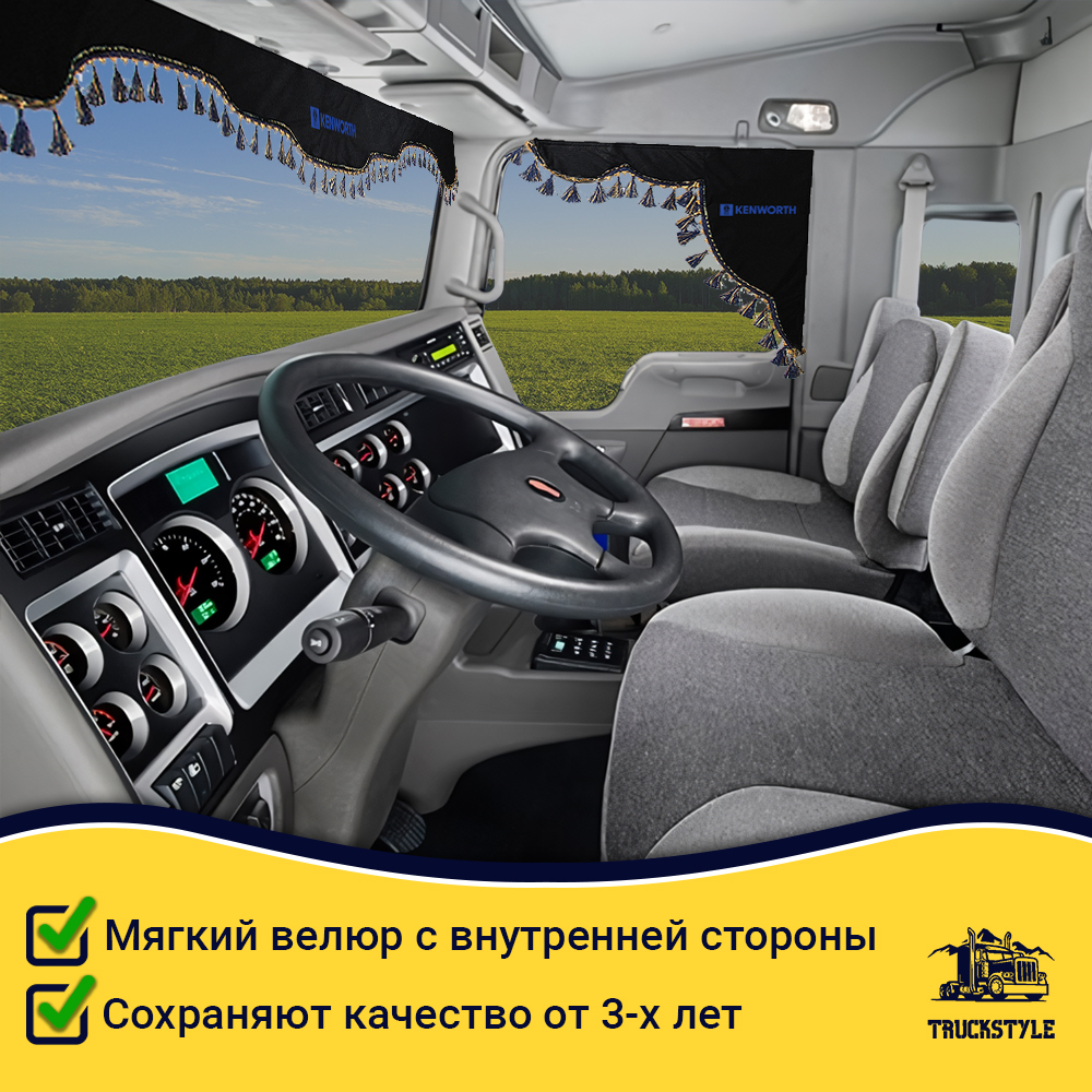 • Ширина лобового ламбрекена 225 см – подходит для седельных тягачей, одиночек и самосвалов Kenworth.
