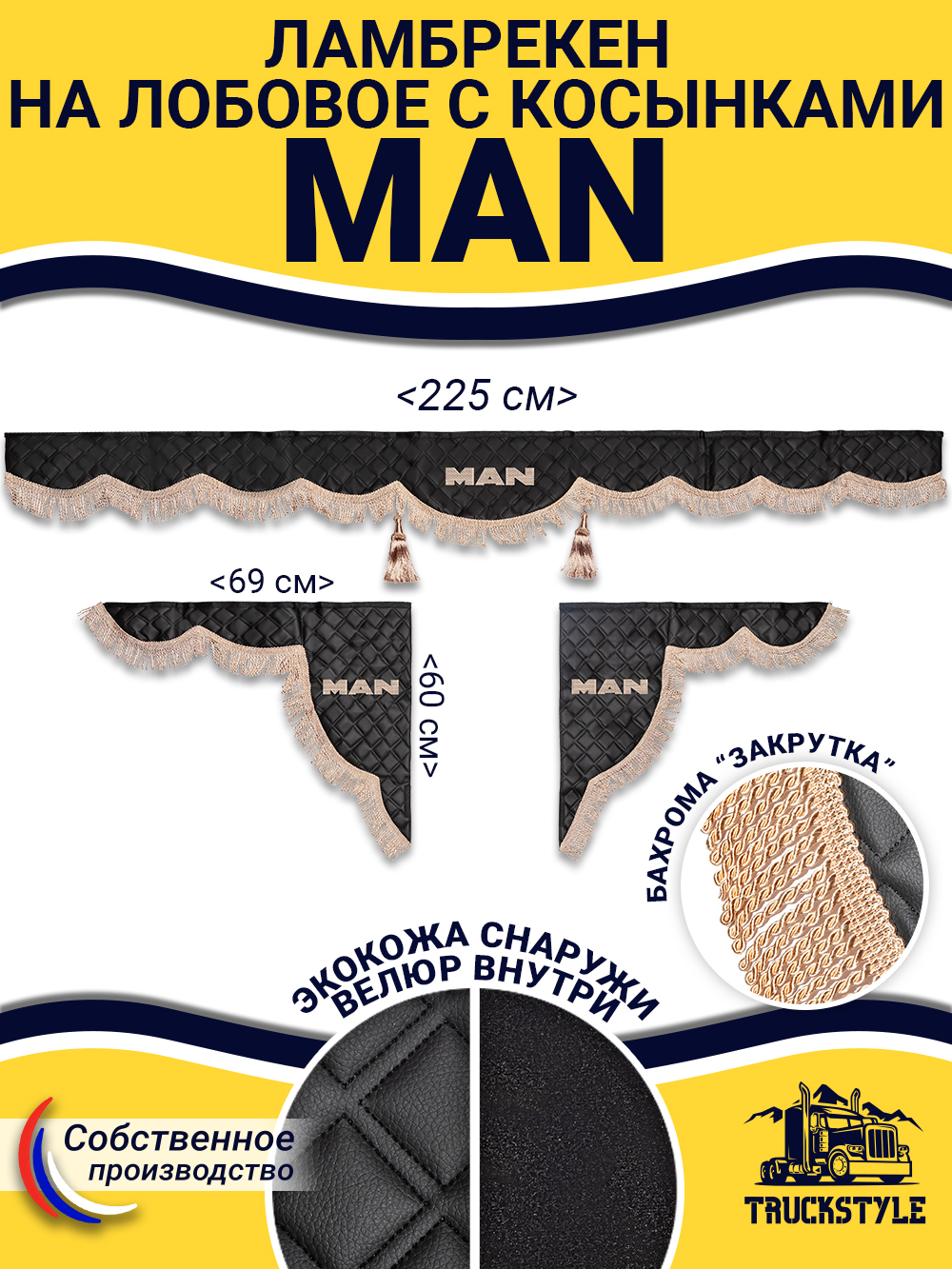 Ламбрекен для лобового стекла + Косынки на боковые стекла для а/м MAN.
