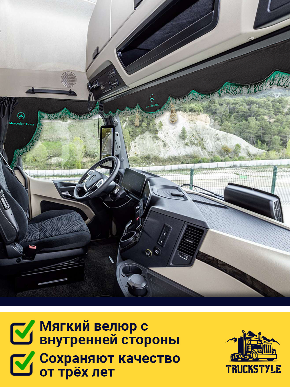 • Ширина лобового ламбрекена 225 см – подходит для седельных тягачей, одиночек и самосвалов Mercedes-Benz.